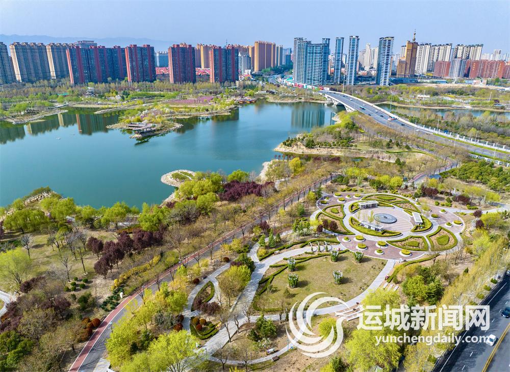 中心城区禹都公园花红柳绿,春景旖旎,一派生机勃勃的景象(4月7日无人机拍摄)。