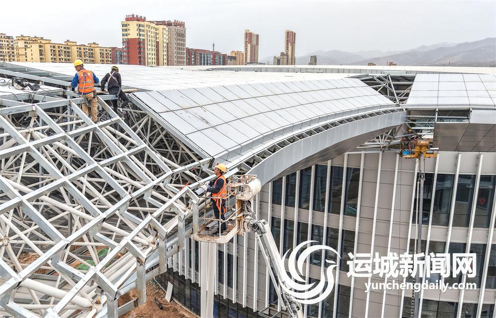 4月4日,在绛县农业科技产业示范园项目建设工地,工人们正在加紧施工。