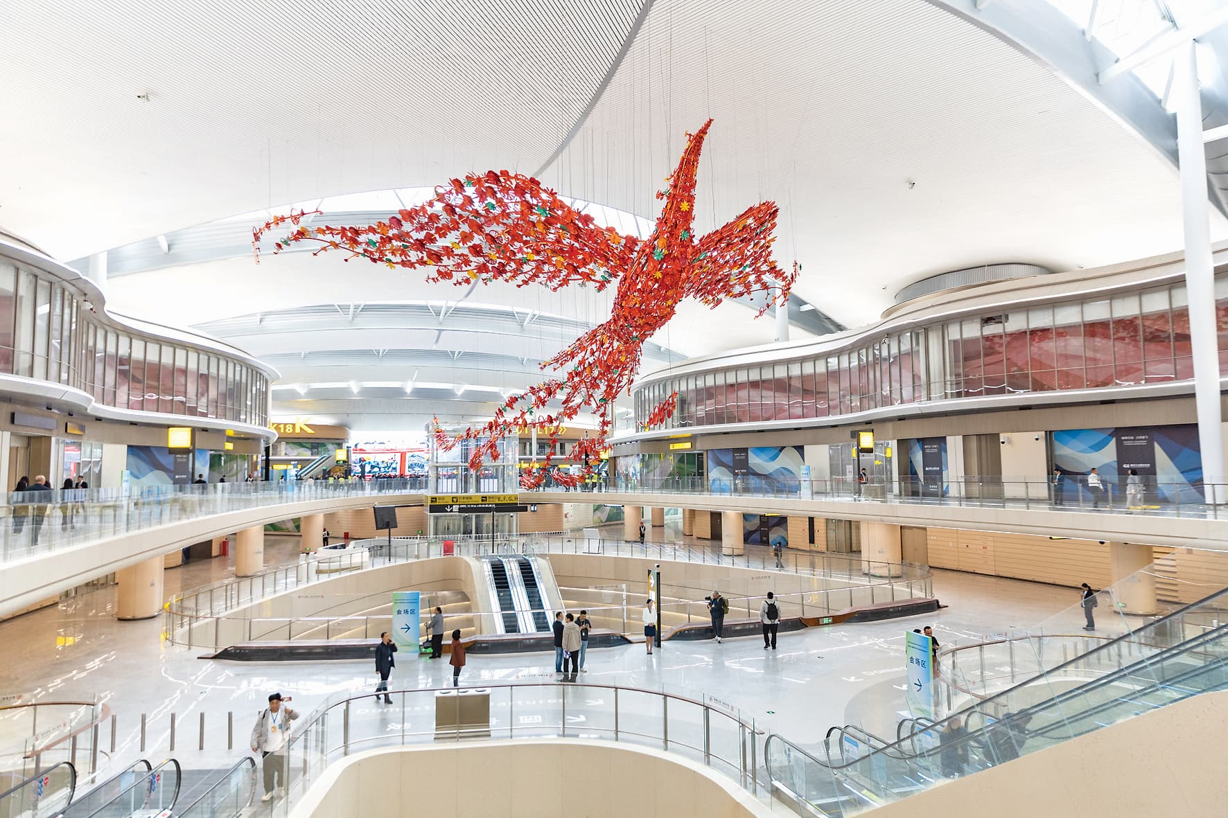 这是4月9日拍摄的重庆江北国际机场T3B航站楼。 当日,重庆江北国际机场T3B航站楼正式投用。T3B航站楼总建筑面积36.3万平方米,与T3A航站楼由旅客捷运系统连接,作为卫星厅仅承担飞机停靠、上下旅客等功能,旅客办票及安检仍在T3A航站楼。 新华社记者 黄伟 摄