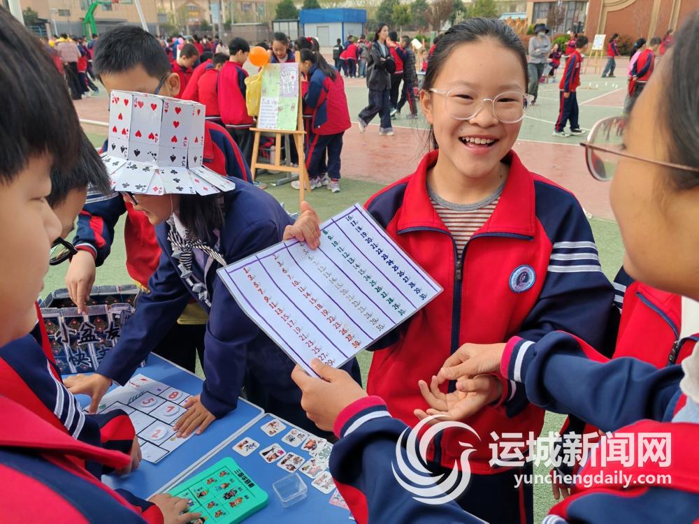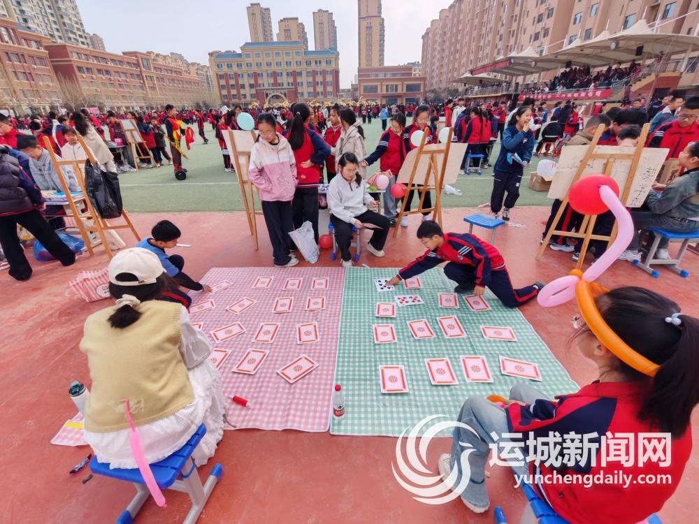 近日,在盐湖区涑水联合双语学校,一场融合数学、美术等学科的“美数π对”完美呈现。在操场上设置的百余个数学游戏体验区,点燃了孩子们对数学的探索热情。