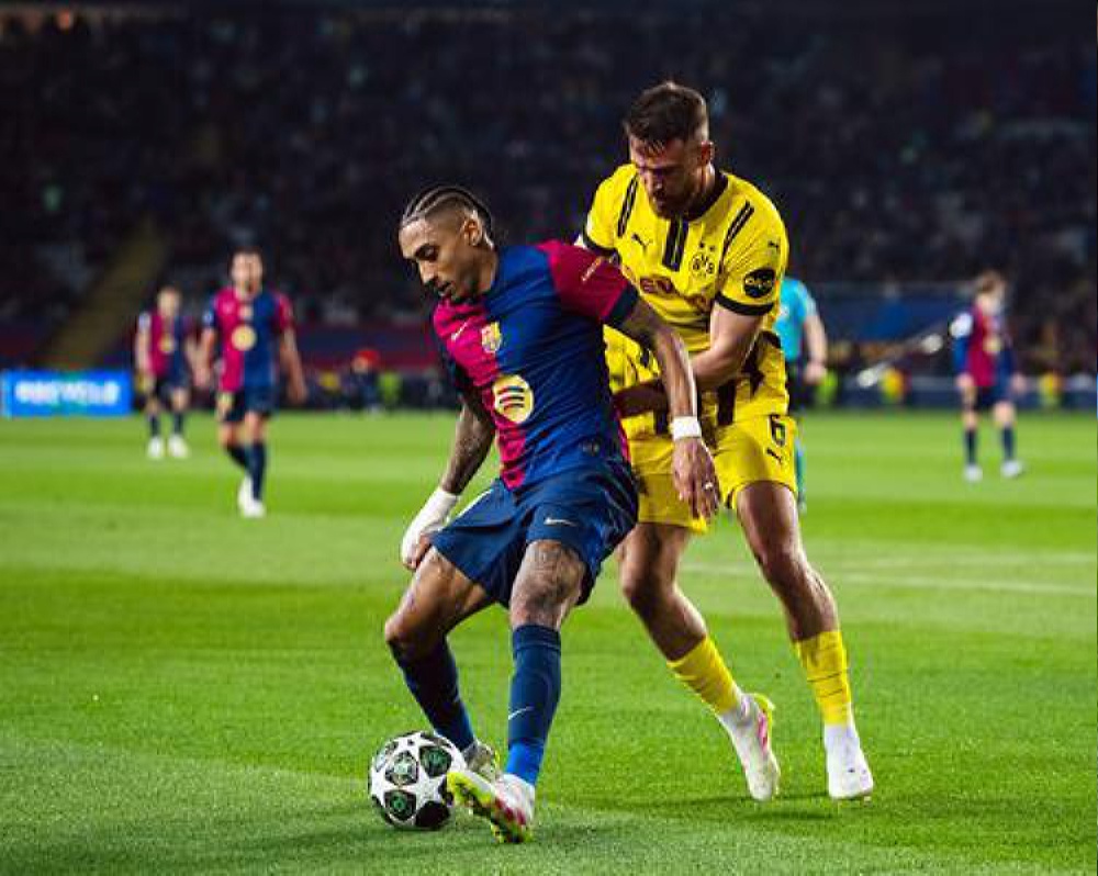 当日,在西班牙巴塞罗那举行的2024~2025赛季欧洲足球冠军联赛四分之一决赛首回合的比赛中,西甲巴塞罗那队主场4比0战胜德甲多特蒙德队。