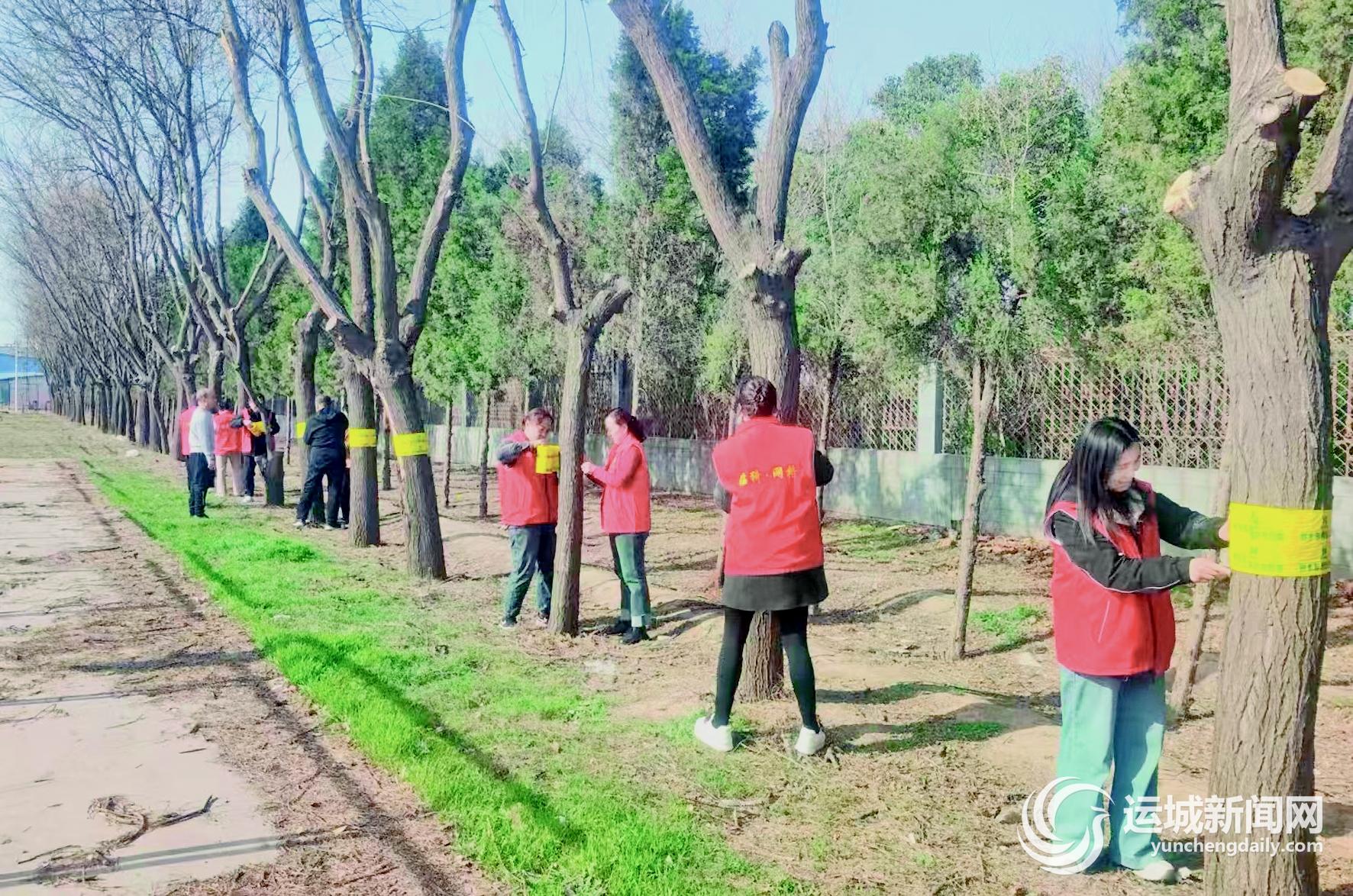 运城晚报讯(记者 李爽)为进一步提升辖区校园绿化养护水平,预防春季树木病虫害,近日,临猗县中城社区工作人员到临晋中学开展树木防虫胶带安装工作,为校园树木穿上“防虫衣”。