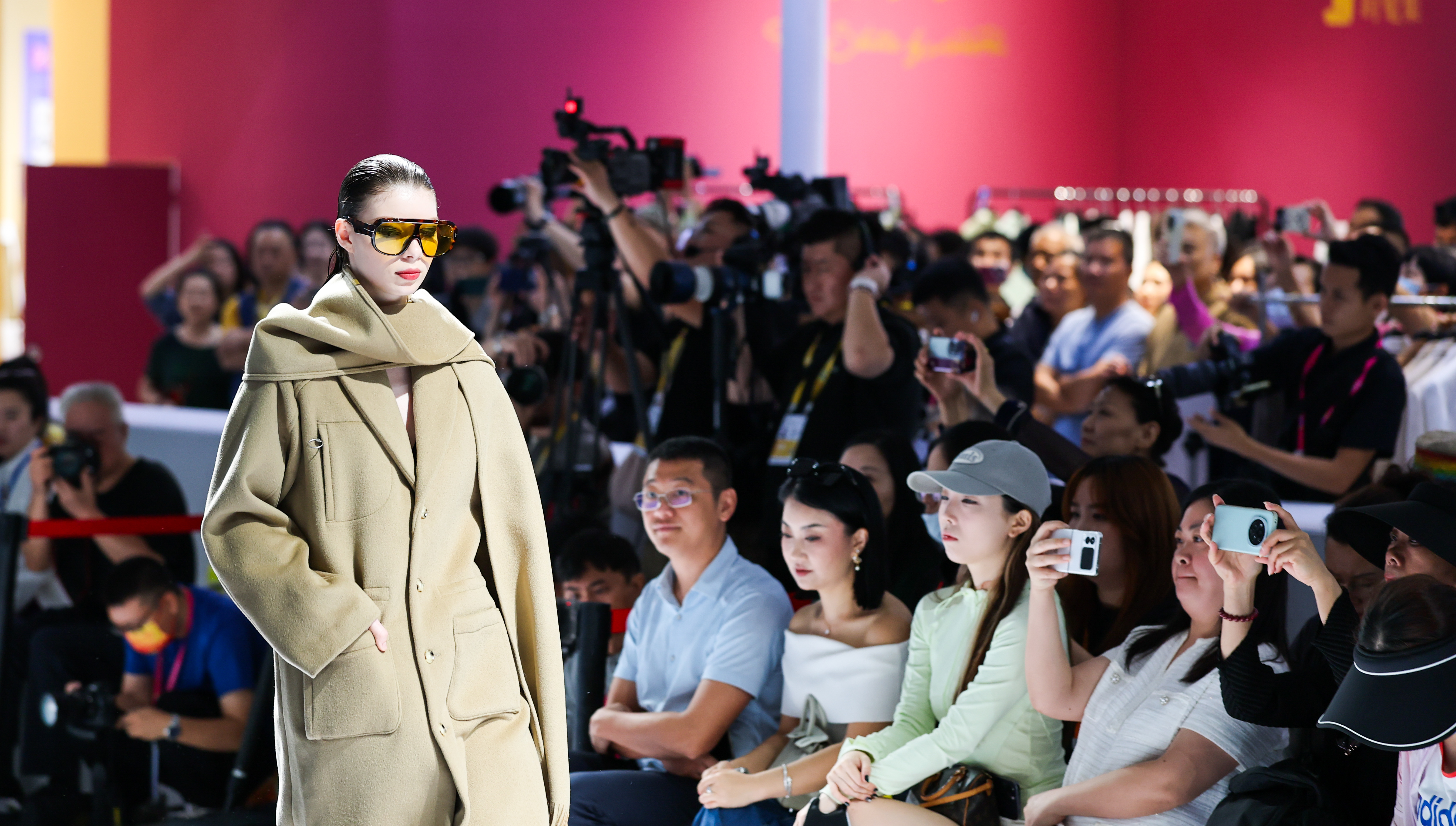 4月17日,观众在第五届消博会时尚生活消费展区观看时装秀。 当日,第五届消博会迎来公众开放日,科技、康养、文化、旅游、体育等领域的消费精品与服务产品与公众见面。开放日不仅是全球消费精品的展示窗口,也让市民、游客近距离感受海南自贸港的开放红利。