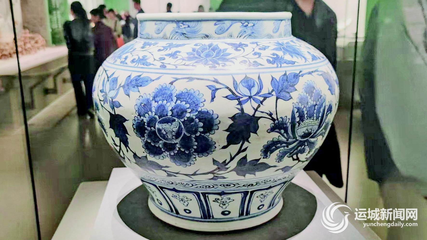 ▲青花缠枝牡丹纹罐