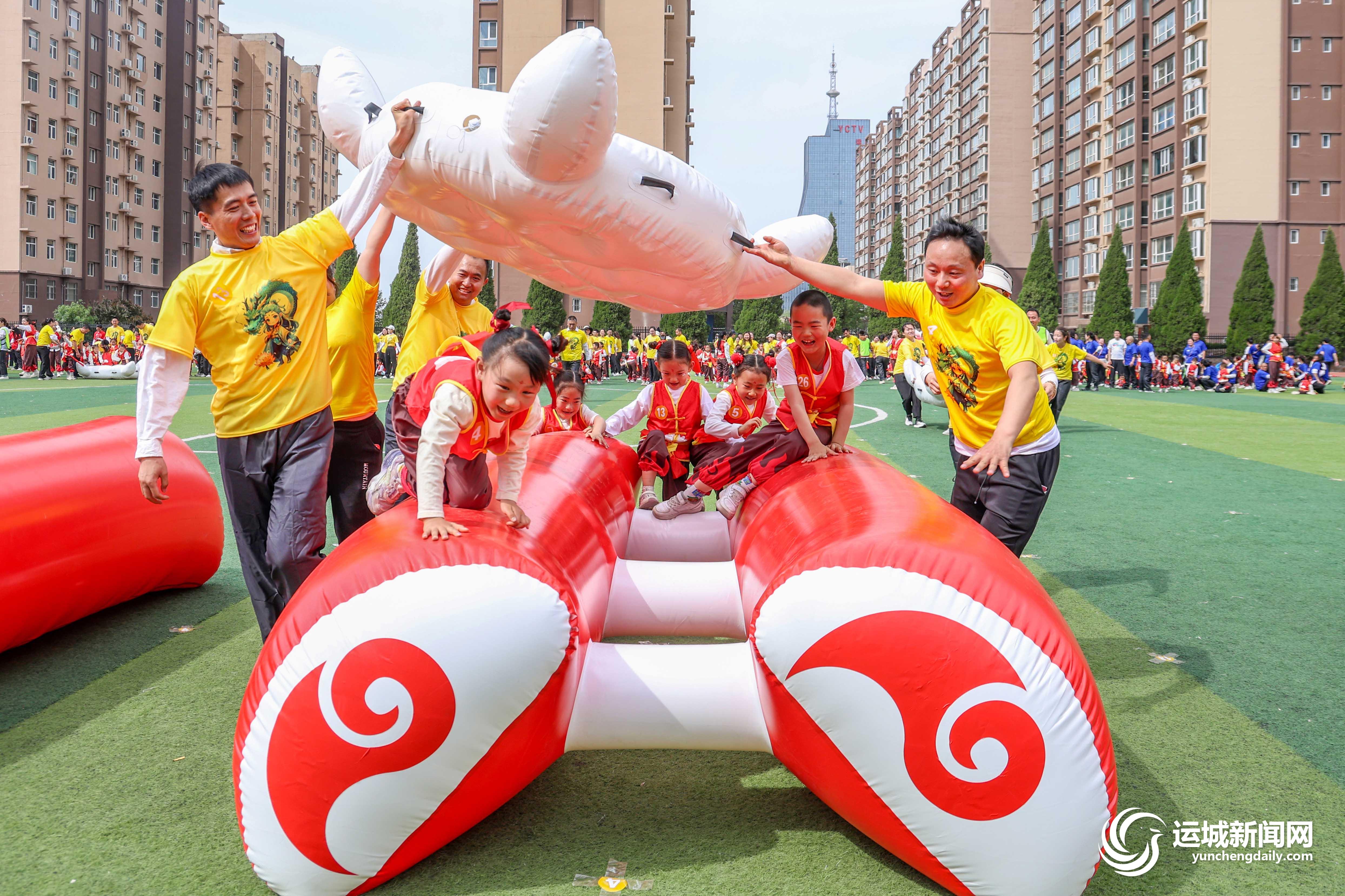 4月18日,盐湖区第二实验幼儿园的学生和家长在参与亲子运动。