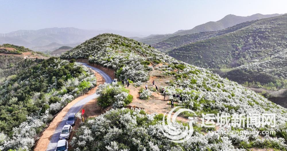 眼下,在夏县瑶峰镇井曹村村后的大沟岭上,漫山遍野的白鹃梅花竞相绽放、分外美丽,与绵延青山、茂密树林相映成景,吸引游人赶来踏春赏花、打卡拍照(4月17日摄)。