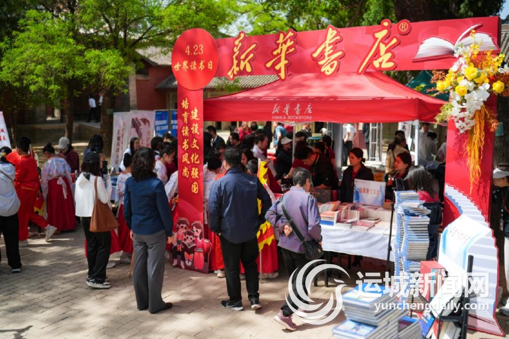 4月23日,解州关帝祖庙景区内,游客在图书集市摊位上翻阅购买书籍。 本报记者 陈方斌 摄