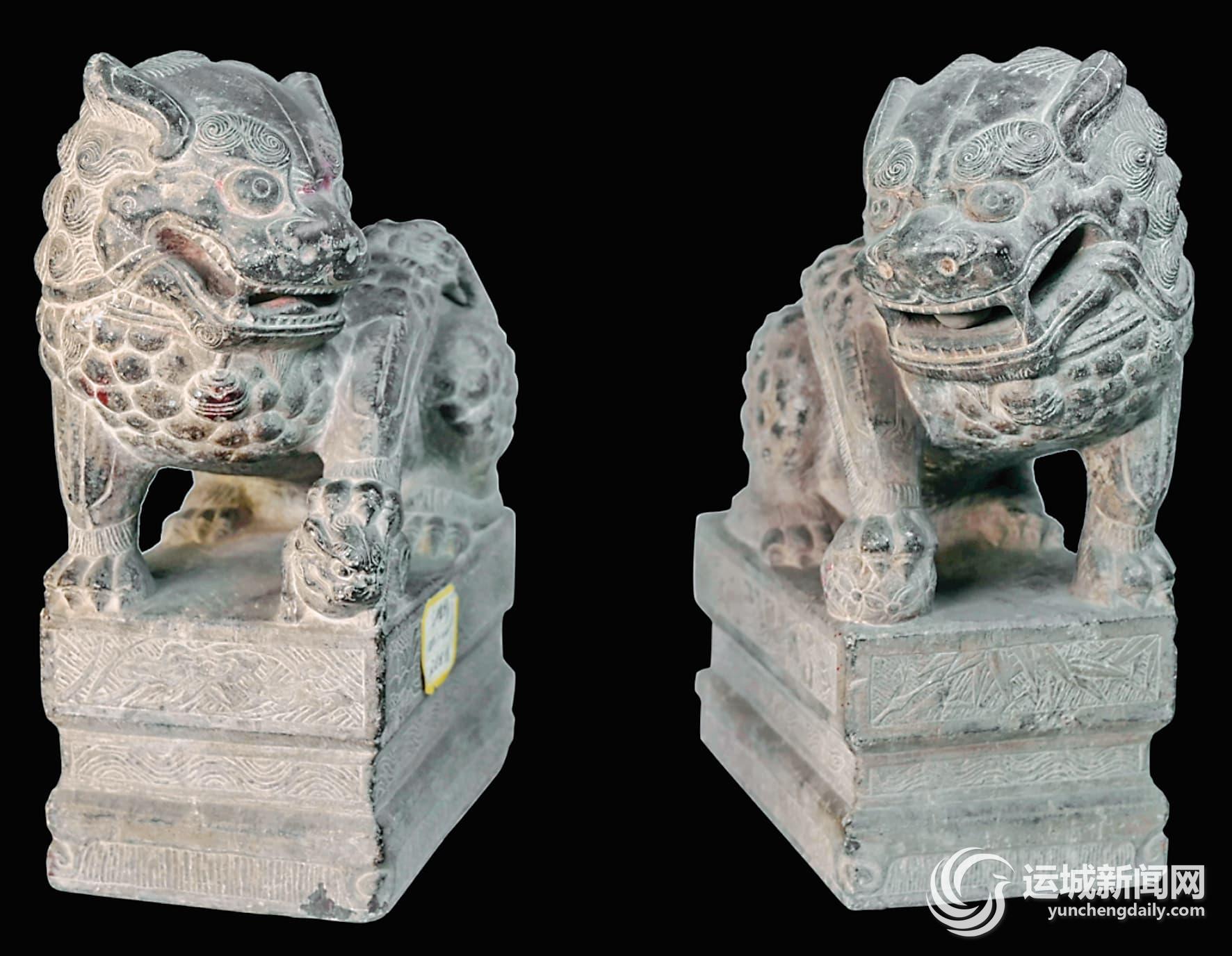 在盐湖区博物馆内,有一对石雕狮子,它们小巧精致,与传统的庞大石狮子形成鲜明对比。这对石雕狮子来自清代,由群众捐送,通高仅24厘米,却工艺精湛,栩栩如生。两尊狮子蹲坐于底座之上,双目圆睁,透着十足的威严,仿佛警惕地听着周围的动静;嘴巴大张,似要发出低沉的怒吼,霸气尽显。颈部悬挂的铃铛,让整体造型多了一丝灵动。雄狮右爪踩着球,球在古代象征着权力、统一与包容,寓意掌控四方、守护领地;雌狮则左爪轻抚幼狮,尽显母性的慈爱与温柔。雄狮滚球逗弄幼狮,雌狮细心呵护幼狮,这般温馨的画面,为这对石雕又添了几分温情,更寓意着生命的繁衍与传承。
