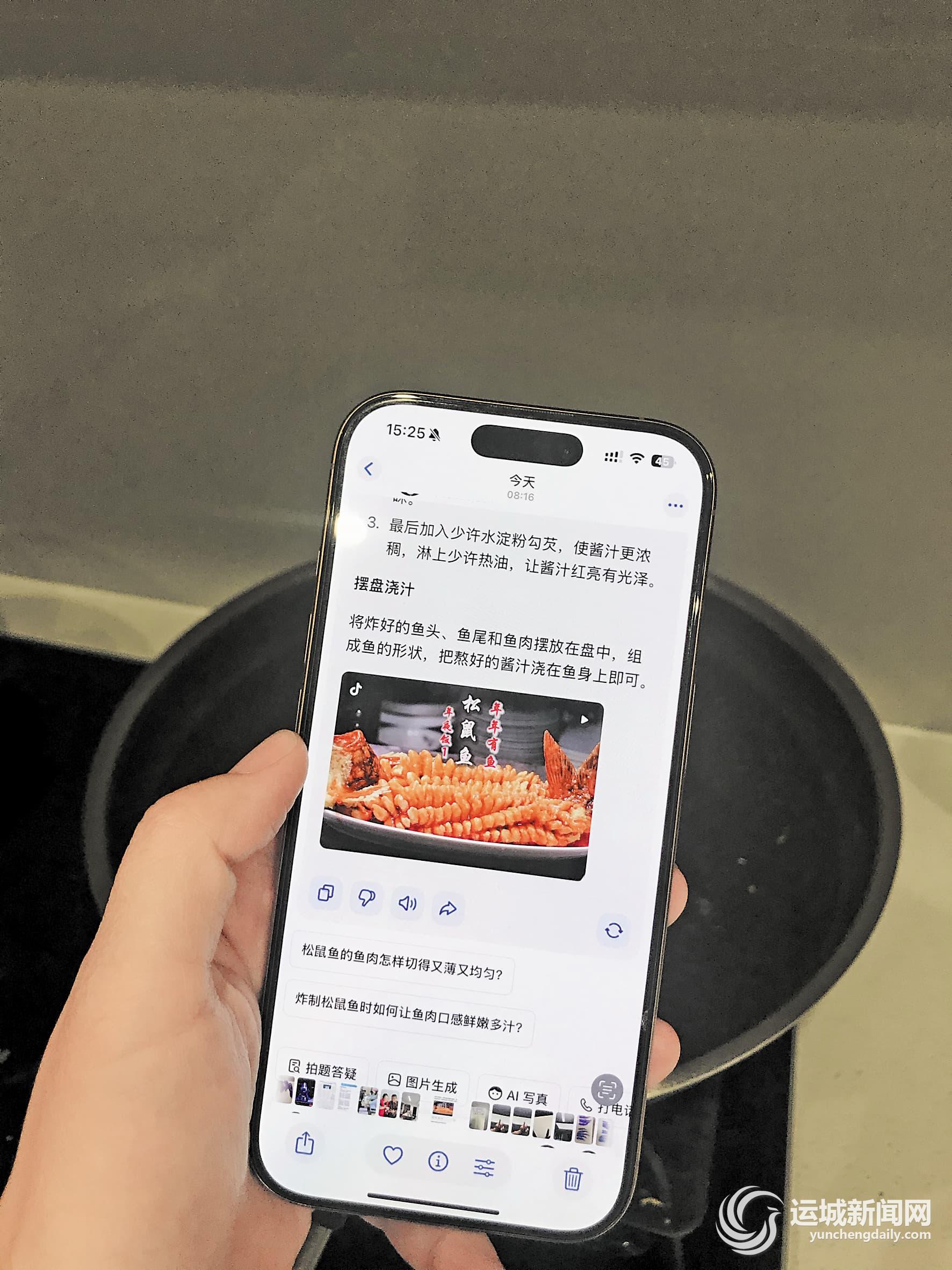李阿姨跟着AI一步步操作,语气里满是自豪:“现在就算是第一次做菜,也能做得有模有样。上次家庭聚会,我照着AI的菜谱做了松鼠鳜鱼,亲戚们都以为我请了大厨!”