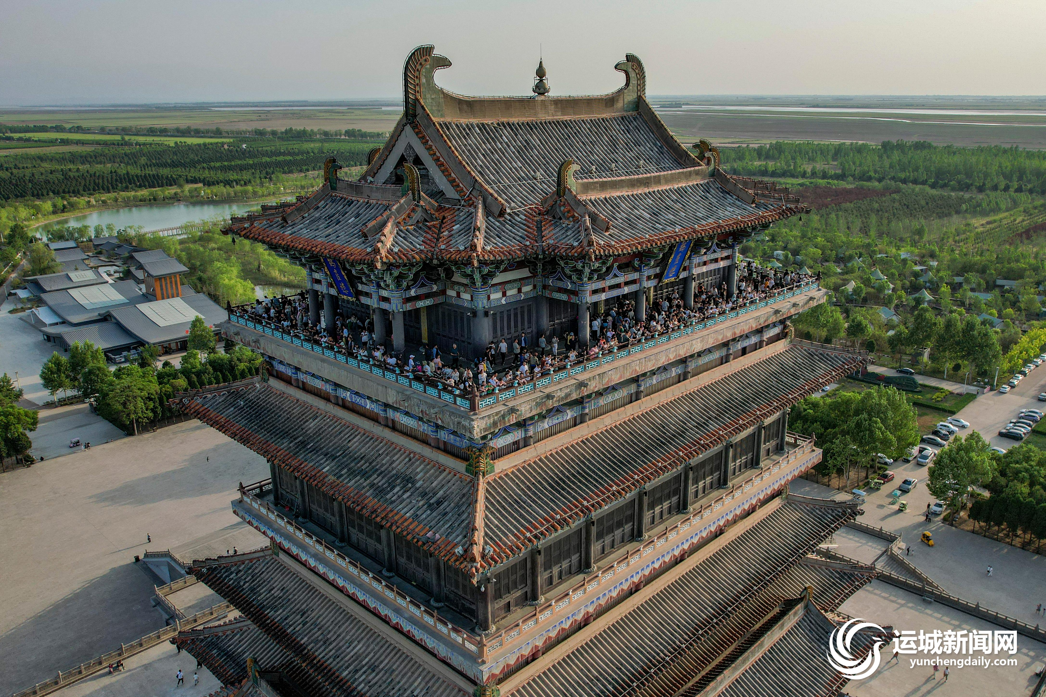 5月3日,永济市鹳雀楼景区游人如织,来自全国各地的游客纷纷登楼远眺,感受“白日依山尽,黄河入海流”的壮丽景象。