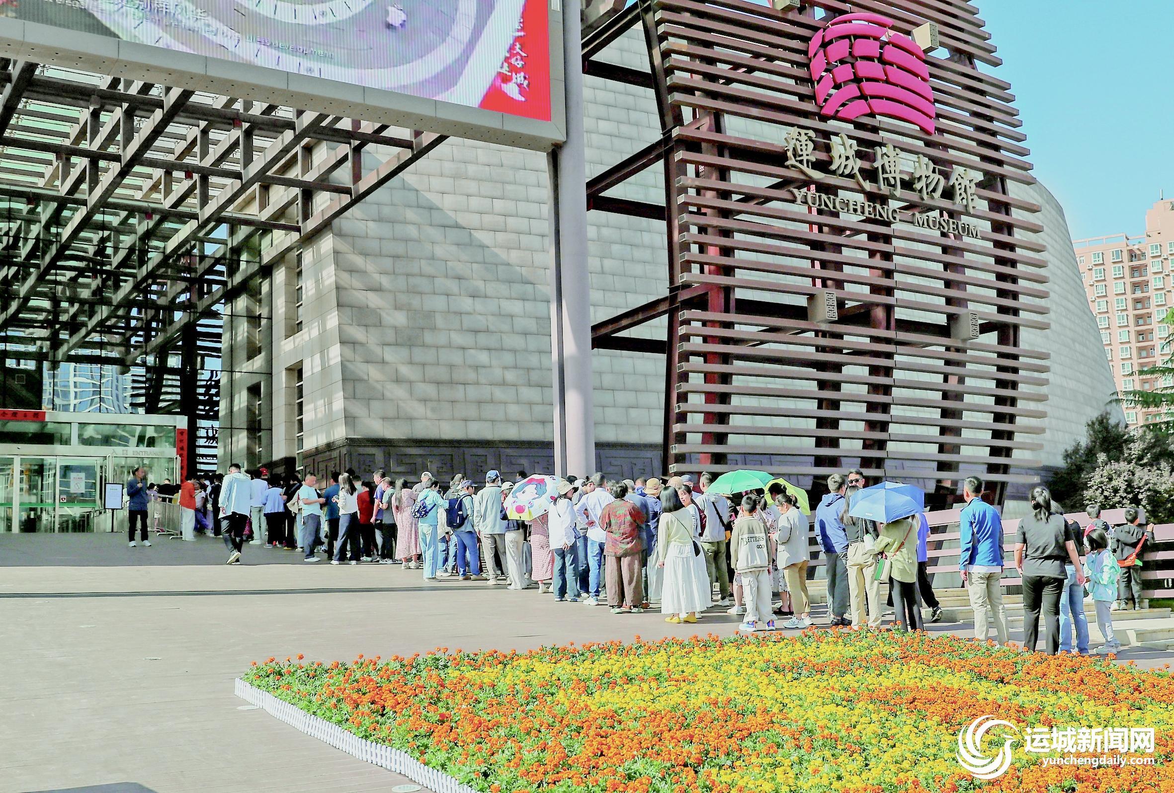5月1日,运城博物馆门前,游客排队进馆,近距离观赏文物,学习历史,感知文明。 本报记者 金玉敏 摄