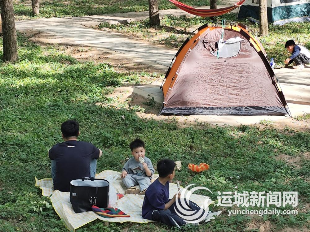 绿意盎然的园区内,处处可见露营的欢乐场景。林间空地上,一顶顶帐篷错落分布,家庭聚会的温馨、好友野餐的欢笑交织在一起。游客们或围坐分享美食,或躺在野餐垫上沐浴阳光,享受着远离城市喧嚣的惬意。即便未携带装备,公园免费提供的桌椅、帐篷也让大家轻松实现露营自由,不少游客感慨:“在这里露营太方便了,真正能做到说走就走!”