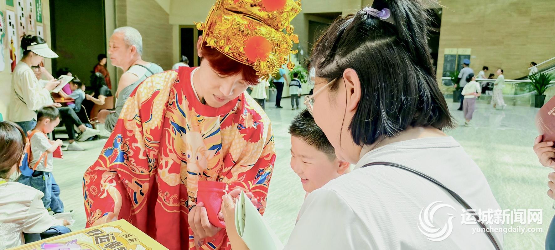 “白日依山尽,下来一句是什么……”扮演诗人王之涣的是盐湖区应届毕业生屈洋洁,她和孩子们互动古诗文背诵,引导观众对诗。她觉得参与这样的活动很有意义。