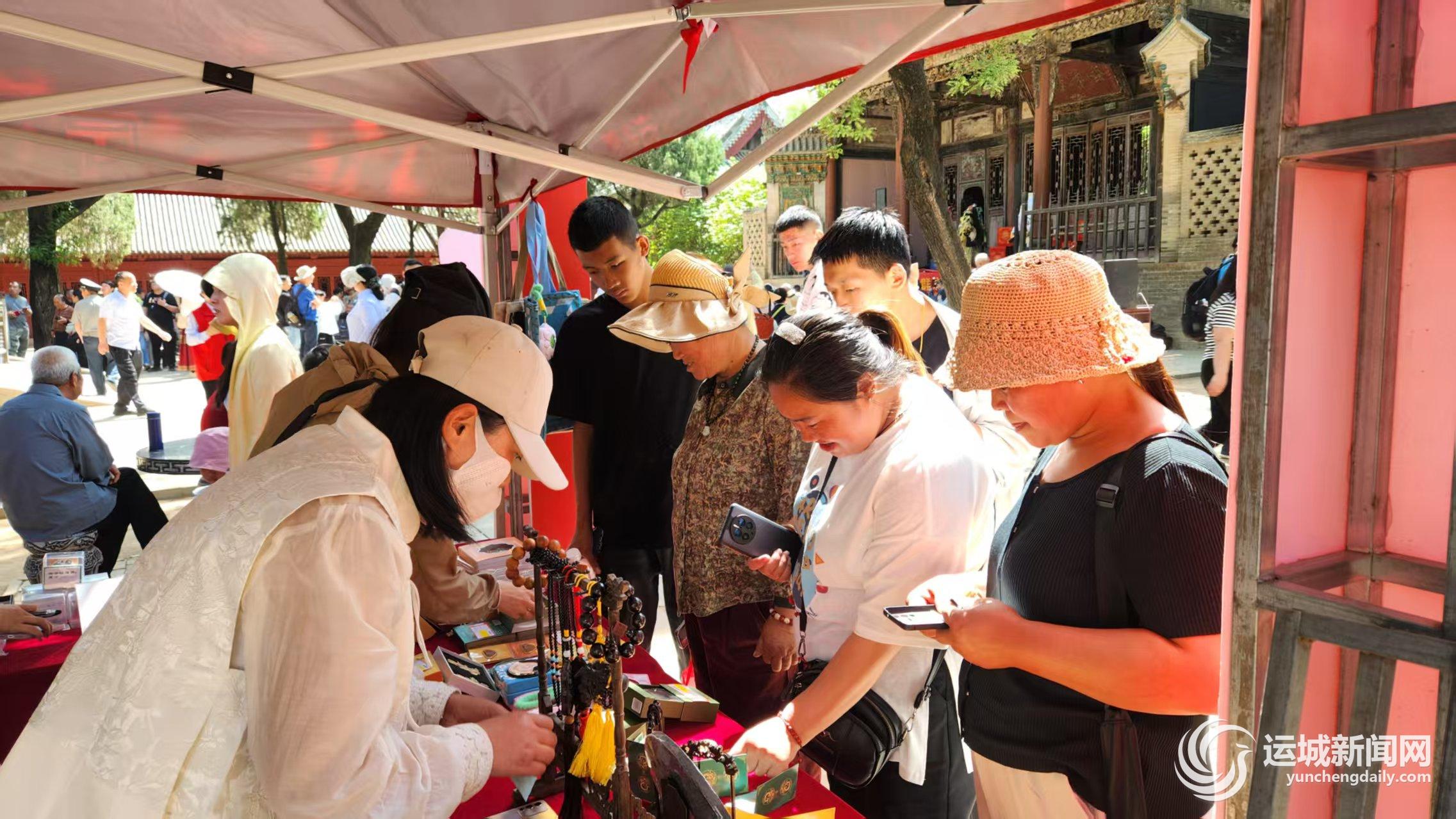 两大景区的文创市集成为文化传播新窗口。解州关帝祖庙文创市集,推出“好运连连”“莲花藻井”等创意产品,兼具收藏价值与趣味性;运城博物馆则围绕考古展览,打造印有文物纹样的笔记本、融入非遗掐丝珐琅工艺的书签,让千年文明“可触摸、可带走”。“这个青铜器造型的冰箱贴太酷了,既实用又有文化味!”选购多件文创产品更成为热潮。据统计,“五一”期间,两大文创市集单日客流量近千人次,销售额同比增长40%,成为传统文化“破圈”的生动实践。