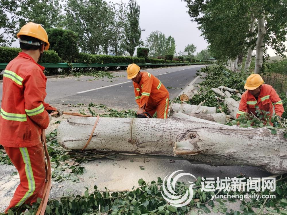 运城晚报讯(记者 祁克宁 通讯员 杜恩)近日,我市突遭短时降雨大风天气袭击,平均风力8级至9级,阵风达10级以上。狂风呼啸之下,运城市境内多条高速路段沿线行道树枝折断,横在路面上,威胁道路通行安全。面对突发情况,山西交控运城公司迅速响应,第一时间启动恶劣天气应急预案,争分夺秒打响了保通保畅的“战斗”。