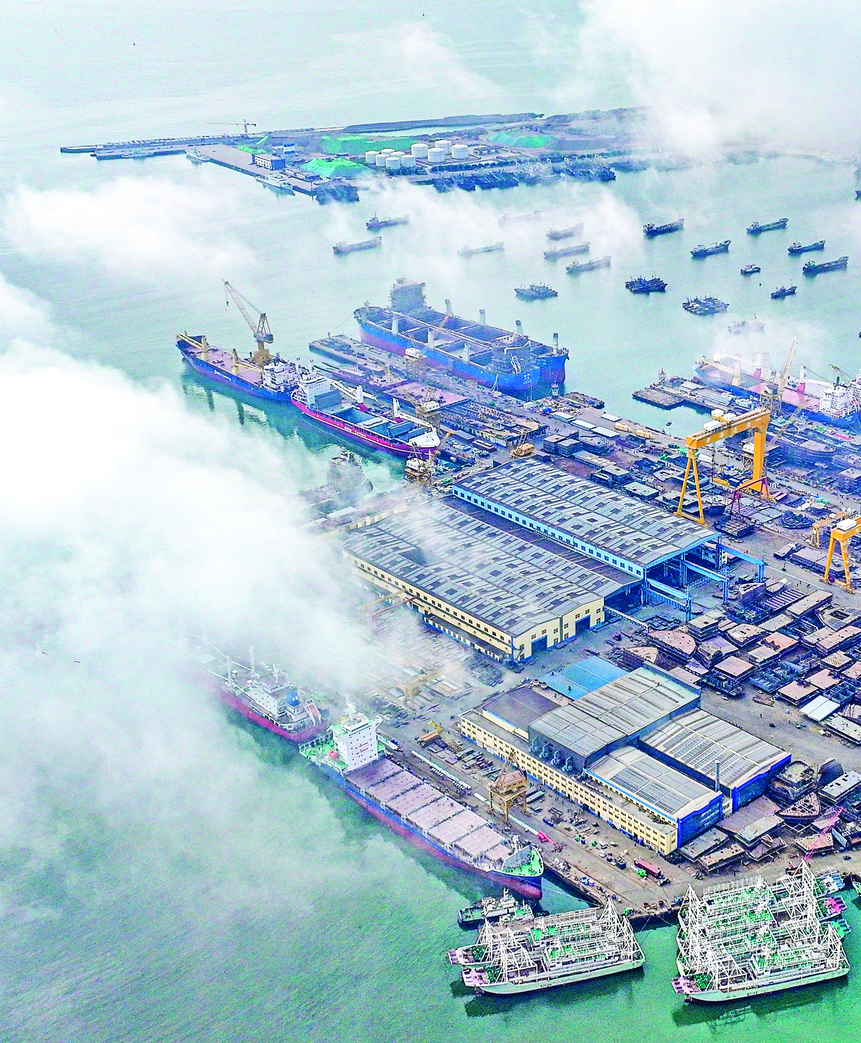 近年来,荣成市抢抓“向海兴运 走向深蓝”战略机遇,大力发展修造船产业,加大技术创新力度,优化产业链合作,增强市场竞争能力,在超大型集装箱船、远洋捕捞船、大型液化天然气船等维修和制造领域取得明显进展,成为我国重要的修造船产业基地之一。 新华社发(李信君 摄)