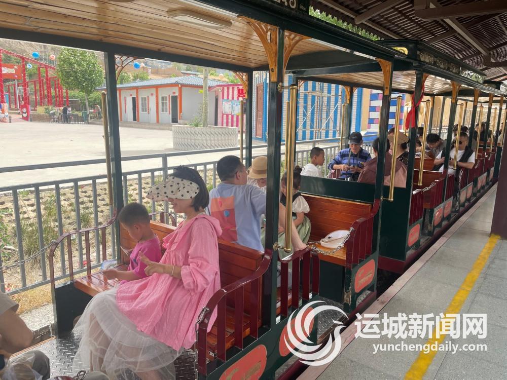 游客在岚山根·运城印象景区乘坐小火车。本报记者 王新欣 摄