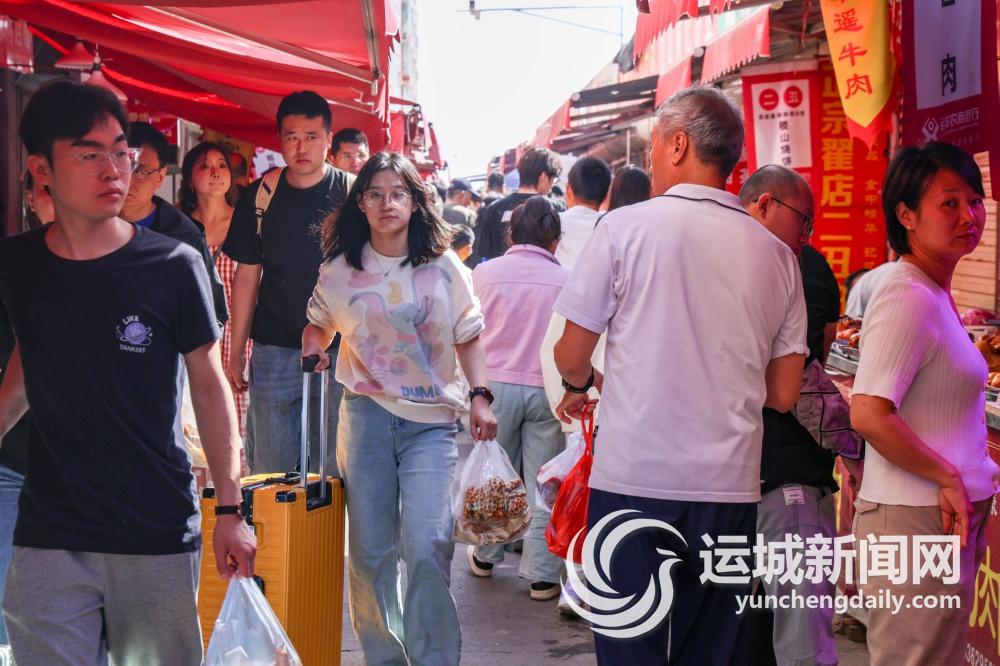 今年“五一”假期刚开始,东湖农贸市场就迎来客流高峰。记者走进市场,首先入耳的是此起彼伏的叫卖声。“临晋粽子,口味多,香甜好吃!”“刚出锅黄河大鲤鱼!”……商户们的声音充满活力。摊位上的食品琳琅满目,鲜嫩欲滴的水果西红柿、红彤彤的樱桃、色香味俱全的熟食、热气腾腾的小吃吸引着来来往往的游客上前挑选。从街头到巷尾,前来游玩、打卡、购物的游客络绎不绝,人头攒动。而其间,不乏年轻人的身影。