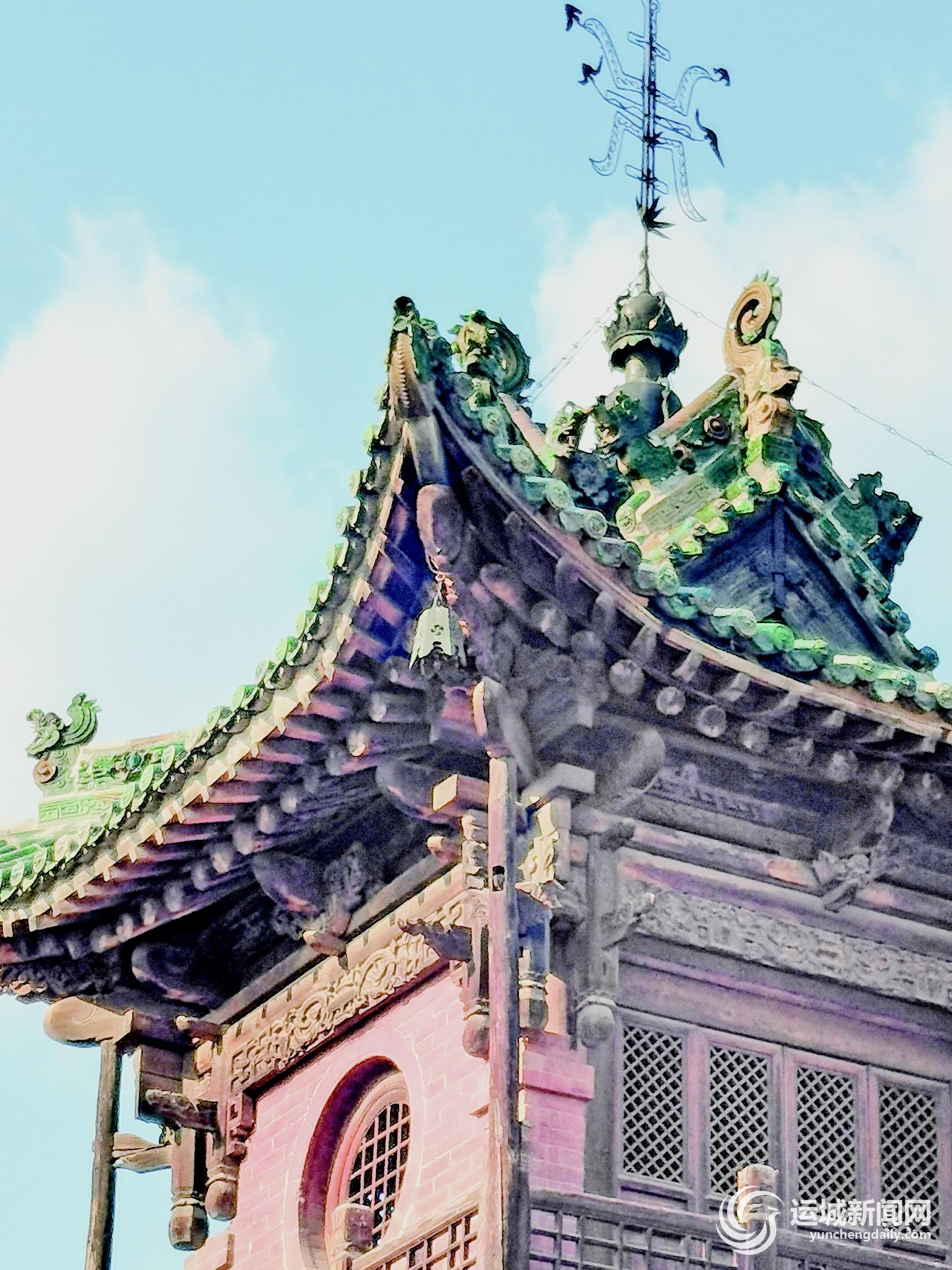 ▲稷山稷王庙钟鼓楼顶的“五蝠捧寿”富丽堂皇 记者 李婉玉 摄
