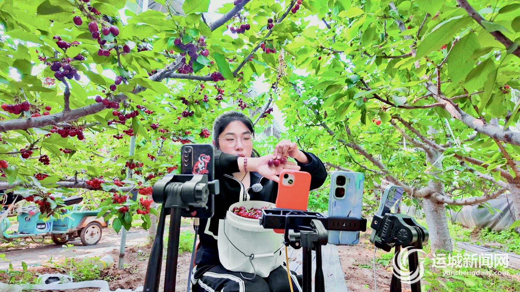 在该县南樊镇,种植户董智飞的樱桃园里格外热闹。他的爱人正举着手机穿梭在果树间,通过直播平台向网友展示刚采摘的樱桃。“咱们绛县的露天大樱桃都是自然成熟,采用生态种植方式,不打农药、不施化肥,口感清甜、汁水饱满……”直播间里,饱满红润的樱桃特写镜头引来网友纷纷点赞,订单提示音此起彼伏。仅两个小时的直播,就售出300多单,销售额突破两万元。
