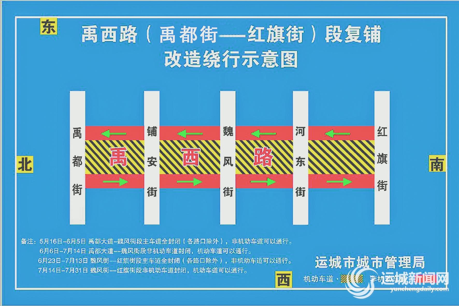 5月16日~6月5日:禹都街至魏风街段主车道全封闭(各路口除外),非机动车道可以通行。非机动车道禁止停放任何车辆。