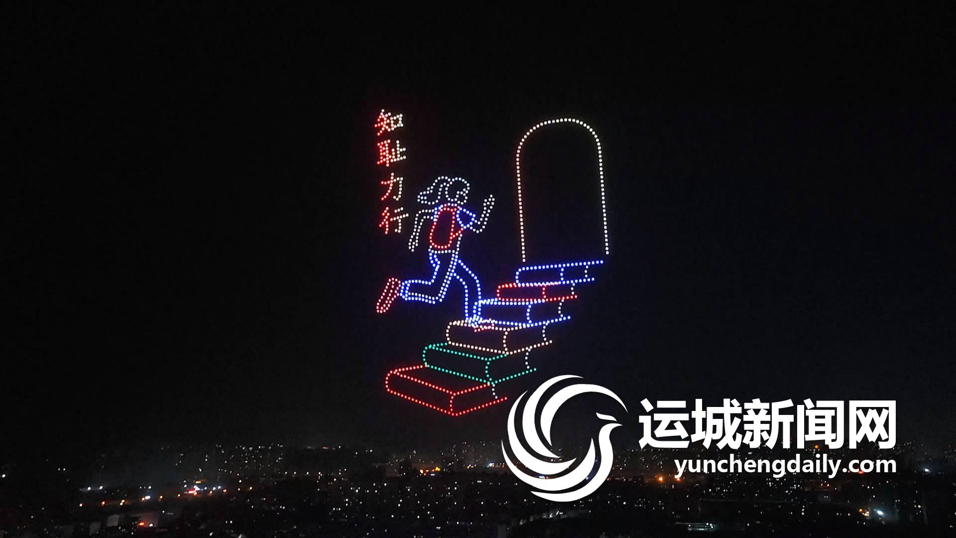 夜幕初垂,千架无人机腾空而起,在夜空次第变幻出盐湖、条山等运城标志性元素,以及“唯美、笃学、崇德、尚智”等校训字样。四层色彩交叠辉映,光影流转间将地域文化、校园精神与现代科技深度融合。“从无人机轰鸣升空的瞬间,就被眼前的壮观景象震撼了。”该校教师杨帆难掩激动,“这些图案不仅展现了科技魅力,更传递出浓厚的文化底蕴。”