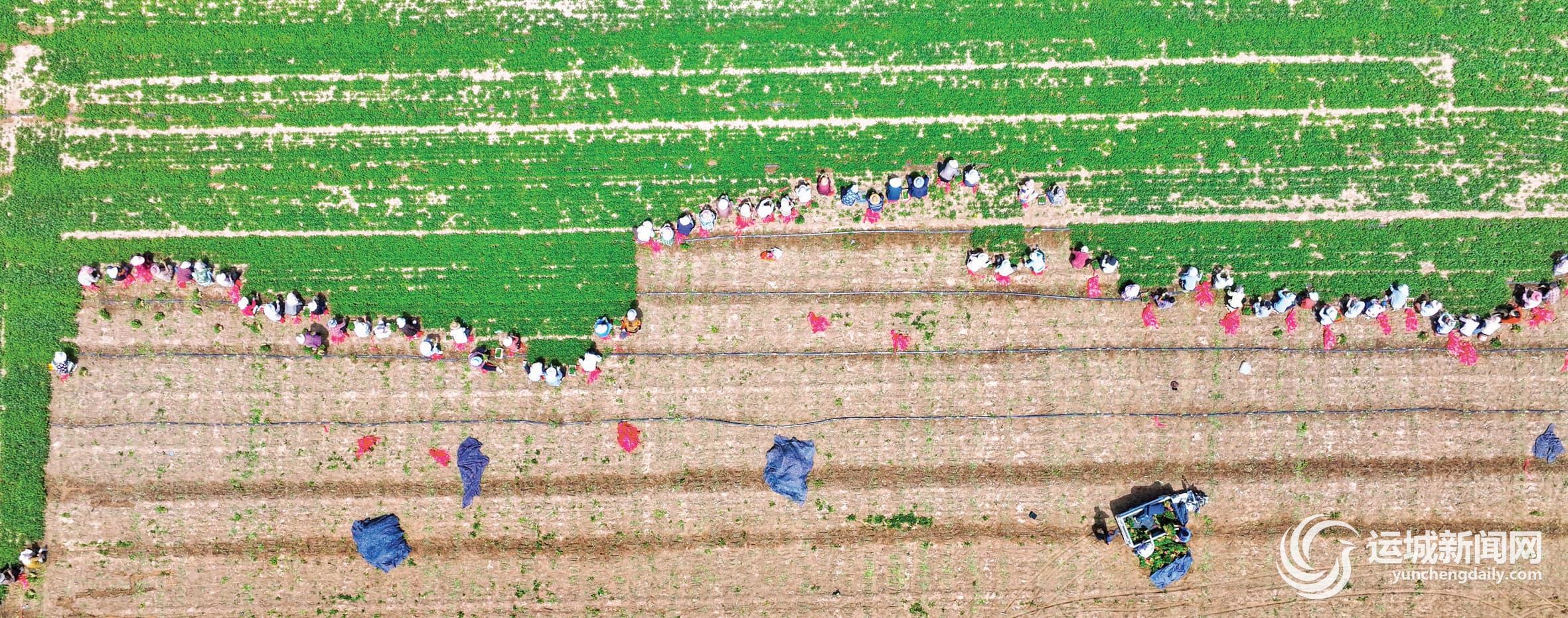 5月18日,夏县南大里乡北大里村农民在收获香菜。该乡近年来采取“党支部+合作社+农户”模式发展香菜种植产业,并积极探索“一年多茬”种植模式,带动农民增收致富。