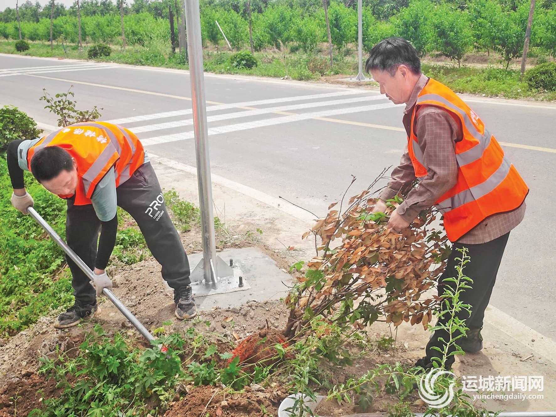 三分栽,七分管。5月20日正午,炎炎烈日下,栲栳镇环卫工人仔细检查新栽的冬青。“这棵树苗叶子发蔫,得赶紧换!”他们麻利地掏出工具,不一会便完成补植。像他们这样的专业养护员,全镇还有很多,他们定期巡查、补植、修枝、刷白、施肥,用匠心守护着每一抹绿色。