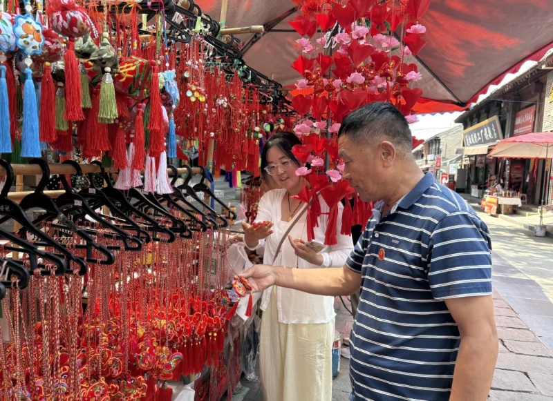 市民杨伯民说:“快过端午节了,我专门到古城购买香包。这里的品种多,式样也好看。我准备每个孩子都买一个,希望他们平平安安,身体健康,事业有成,学业有成。”