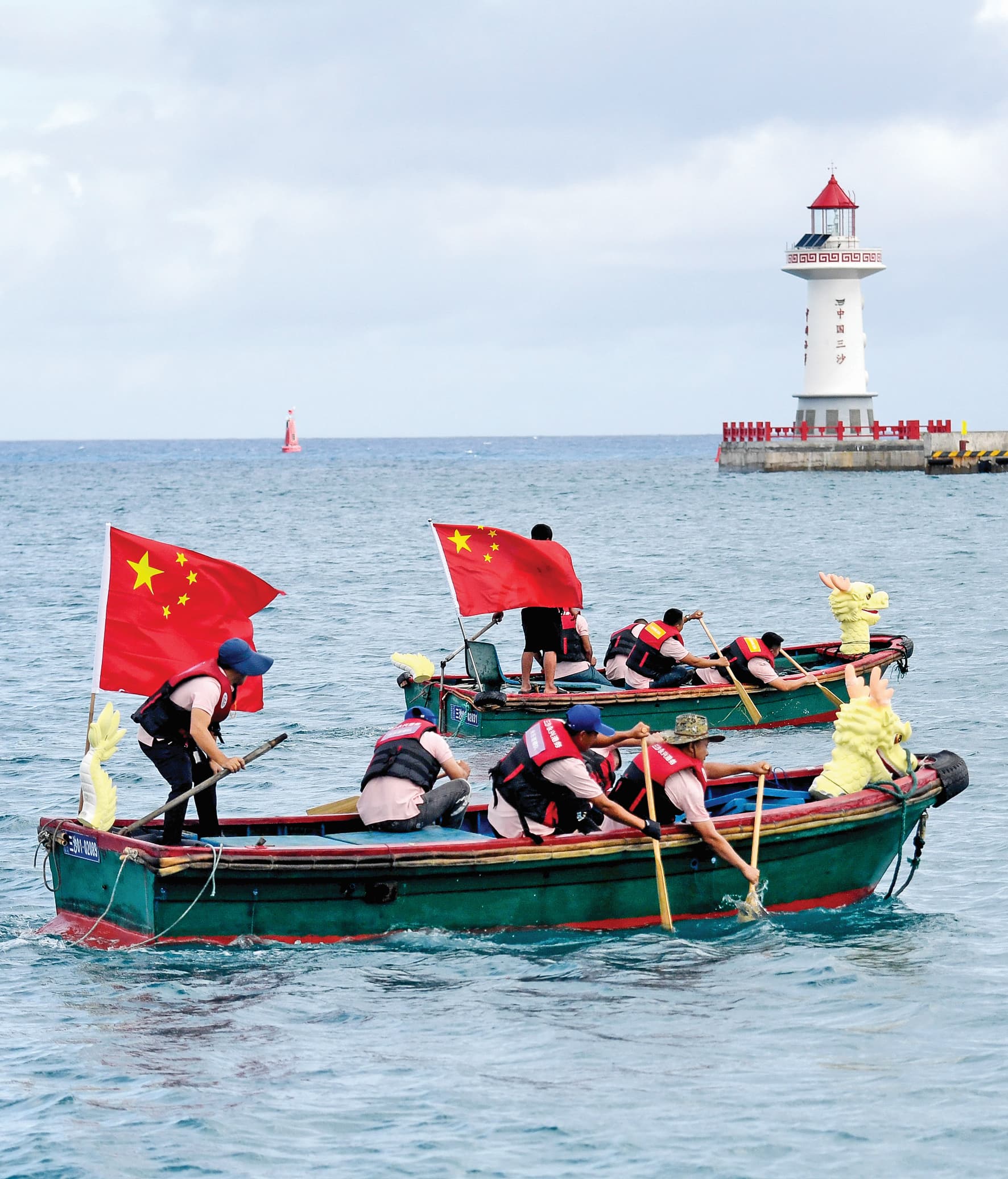5月29日,海南省三沙市在永兴岛举办“渔家龙舟”竞渡迎端午活动,13支参赛队伍同场竞技,在碧海蓝天间展开激烈角逐。 新华社记者 赵颖全 摄