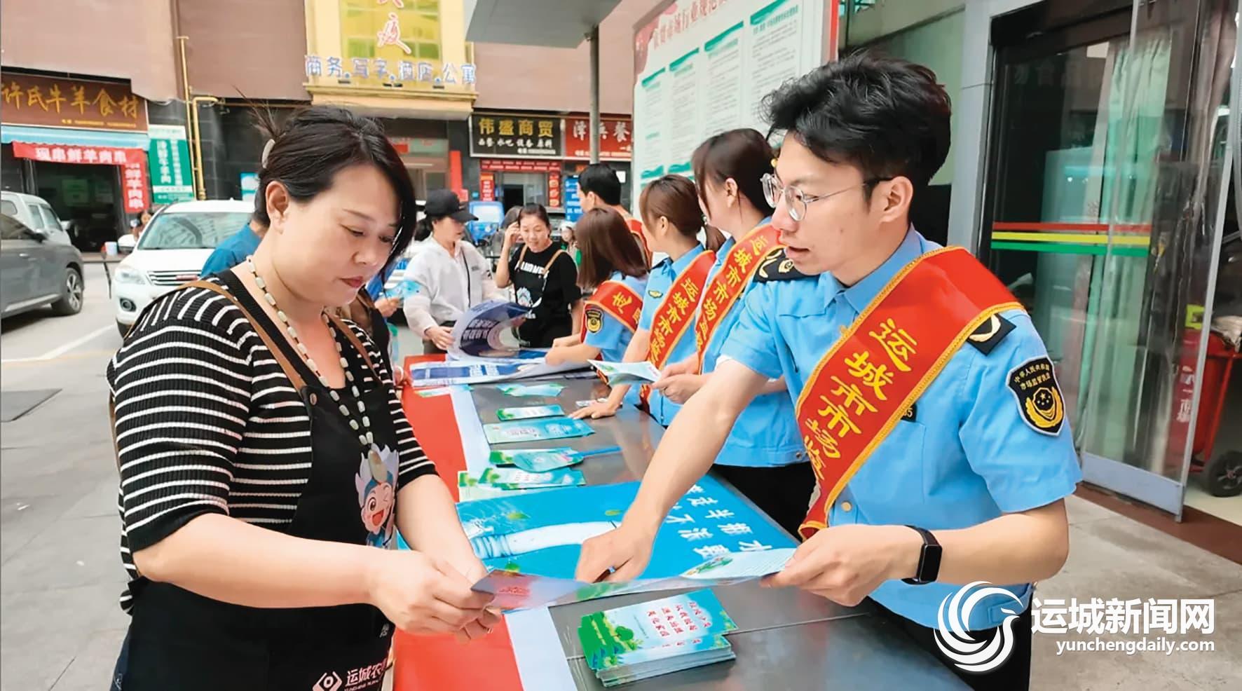 市市场监督管理局工作人员给群众发放垃圾分类知识手册、宣传海报等资料,向市民普及垃圾分类常识。(资料图片)