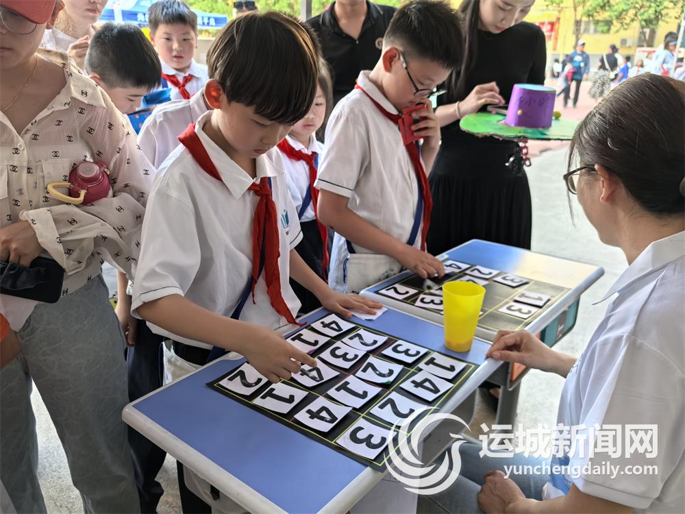 “闯关成功!”5月27日,二年级9班的张悠皓刚刚完成扑克牌速算的挑战,他需要先将牌面上的数字做加法,然后由教师随机抽走一张牌,重新计算,在规定时间内答对被抽走的扑克牌数字。在游戏中,课堂知识得以巩固,学习兴趣被进一步激发。“我喜欢这样的数学游戏,解密过程有趣好玩,我一会儿还准备玩其他游戏,争取全部通关。”张悠皓说。