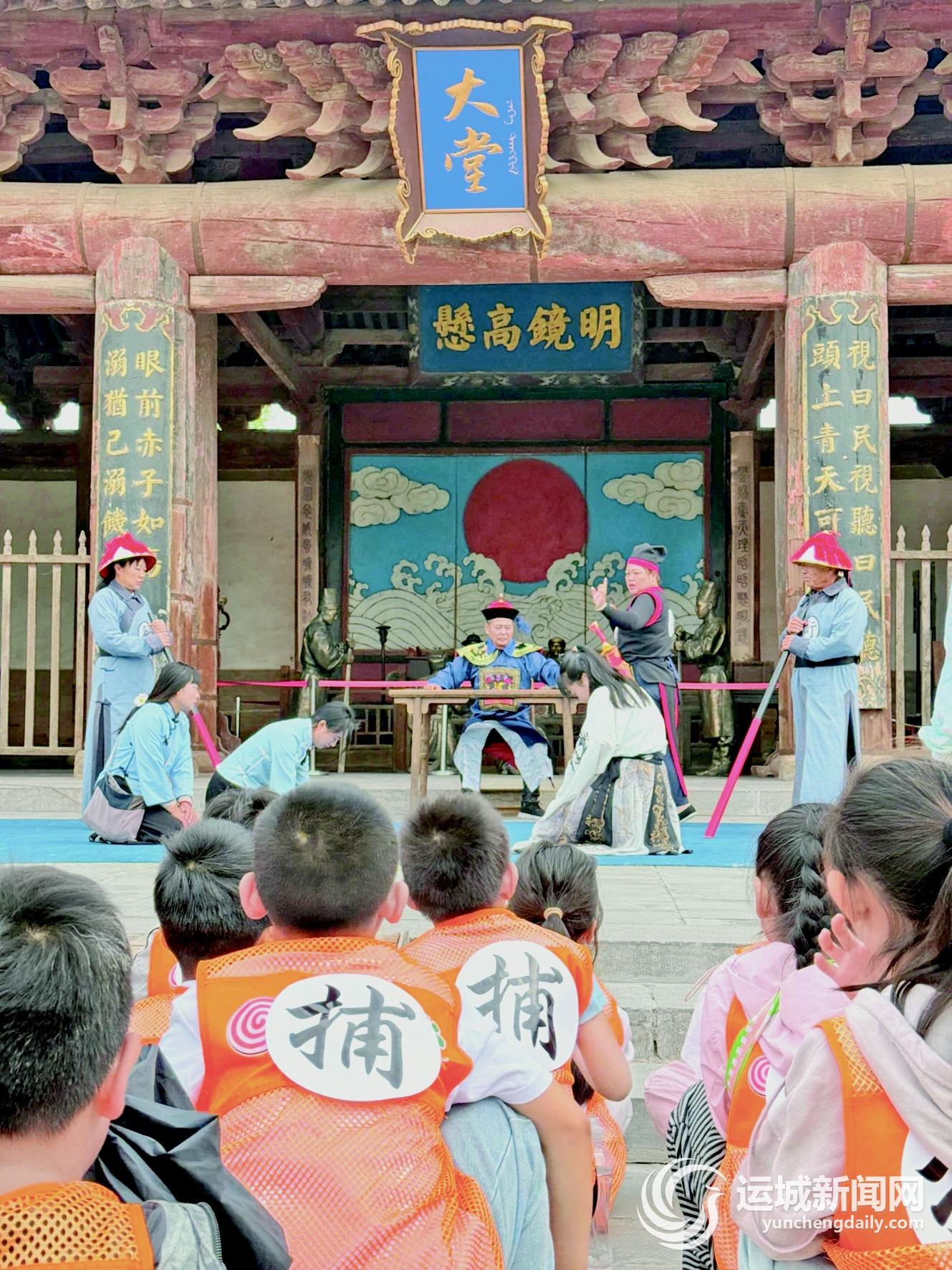 活动现场,身着仿古捕快服饰的孩子们在讲解员带领下,探秘临晋县衙建筑智慧。通过“县衙职能知多少”趣味问答,孩子们了解古代司法制度的运作逻辑;在互动体验环节,“升堂喊威武”“捕快扎马步”等沉浸式表演,让孩子们立马代入“古代公务员”角色;端午主题绕口令挑战赛、“王维诗词接龙”等创意游戏,则将唐诗古韵与民俗体验巧妙融合。