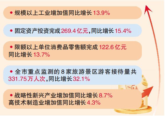 本报讯(记者 余 果)近日从市统计局了解到,1月至4月,随着一揽子存量政策和增量举措持续发力显效,全市经济势头强劲,主要经济指标进位明显,呈现出投资领跑、工业加速、消费升温,供需两端同向发力的运行特点。