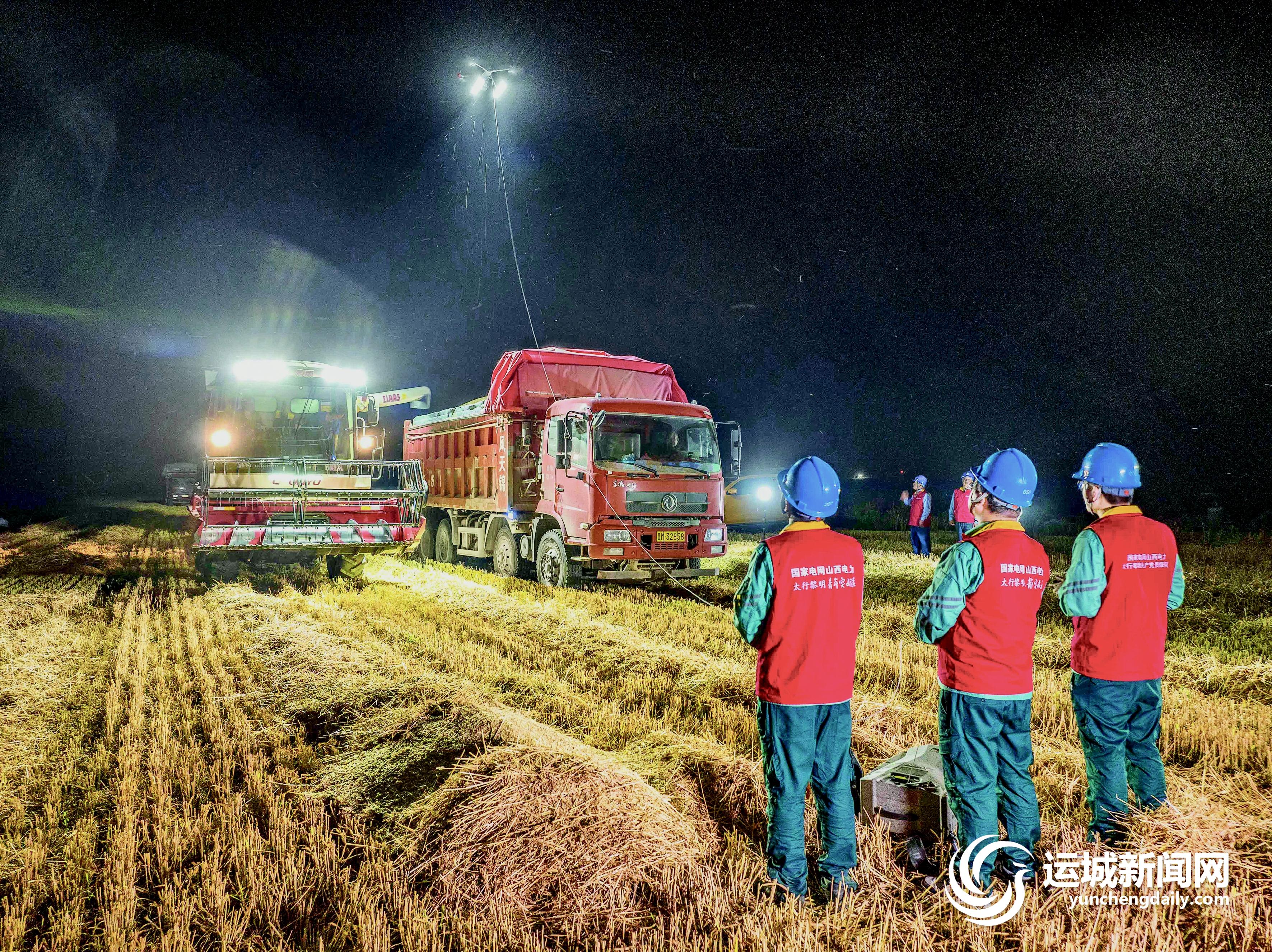 为应对多变天气,保障夏粮抢收工作顺利进行,国网运城供电公司组织共产党员服务队深入麦田,利用无人机、应急工作灯等移动照明设备提供夜间照明。 记者 薛俊 摄