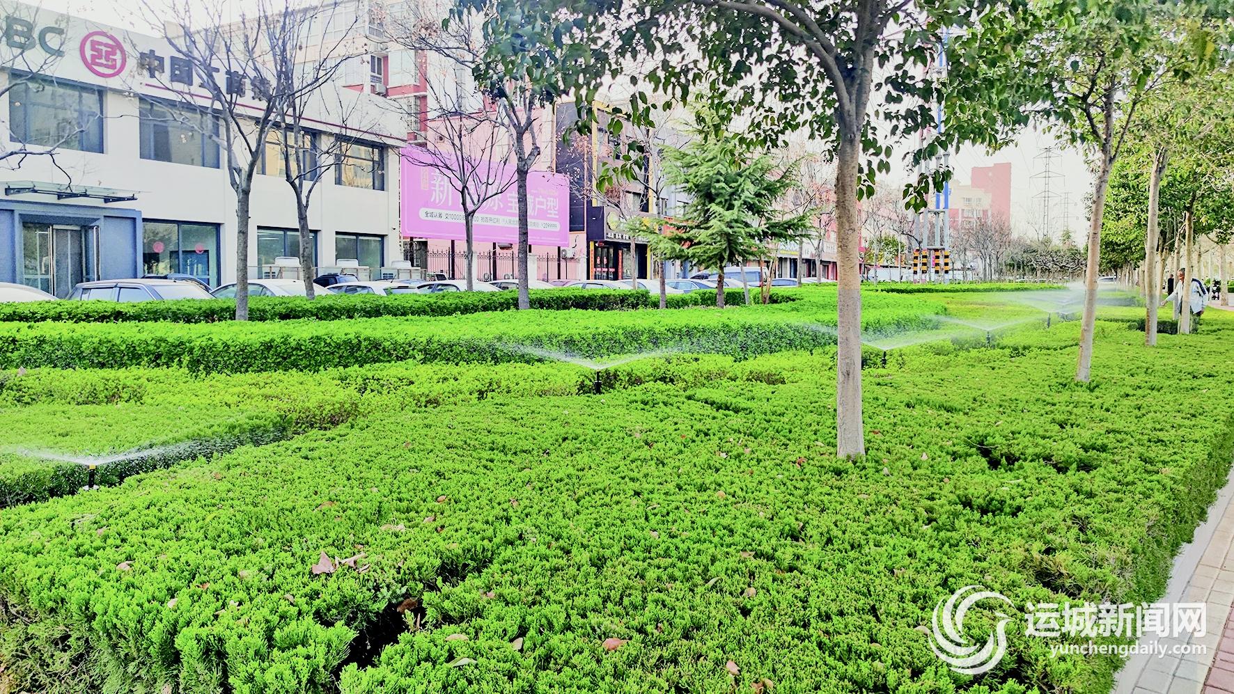 随后,在人民北路一处绿地内,记者看到智能浇灌设施均匀地喷出细密的水雾,滋润着周围的绿篱。据了解,中心城区智能浇灌系统如今已覆盖10条街道,该系统能够根据环境湿度、土壤水分等因素,远程调节浇水量和浇水时间,可以使灌溉工作更加智能、精准、高效。