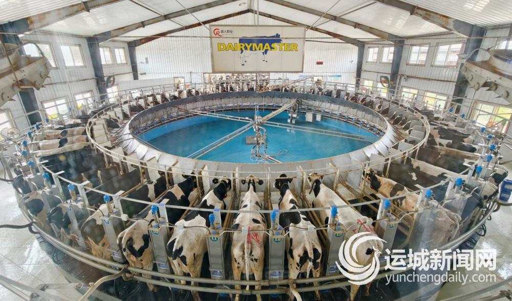 在山西永济市超人奶业有限责任公司,总经理胡仁超热情地介绍:“我们这个场区目前存栏奶牛1600头,可存栏3000头,占地280亩,2021年建设,2022年开始投产使用,目前泌乳牛存栏900头,日单产42千克,每天销售牛奶38吨,年生产牛奶13000吨。”