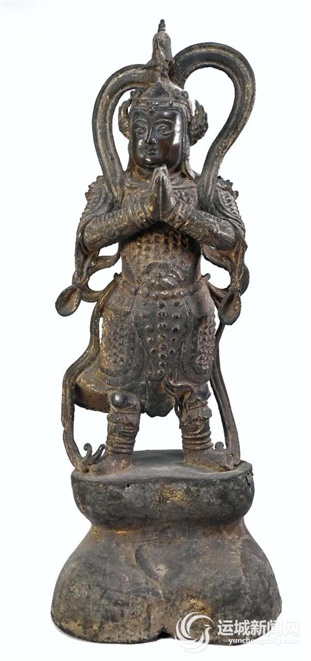 河东大地文物古迹众多,如果您留意,可能就会在某个佛寺古刹与韦陀菩萨塑像偶遇。韦陀(韦驮)菩萨是佛教中的护法神,肩负护持佛法、庇佑僧众与寺庙等重要使命。在盐湖区博物馆,就有这样一件明代鎏金韦陀立像,集中体现了当时社会的宗教信仰、金属技艺、审美意趣等历史文化内涵,颇引人注目。