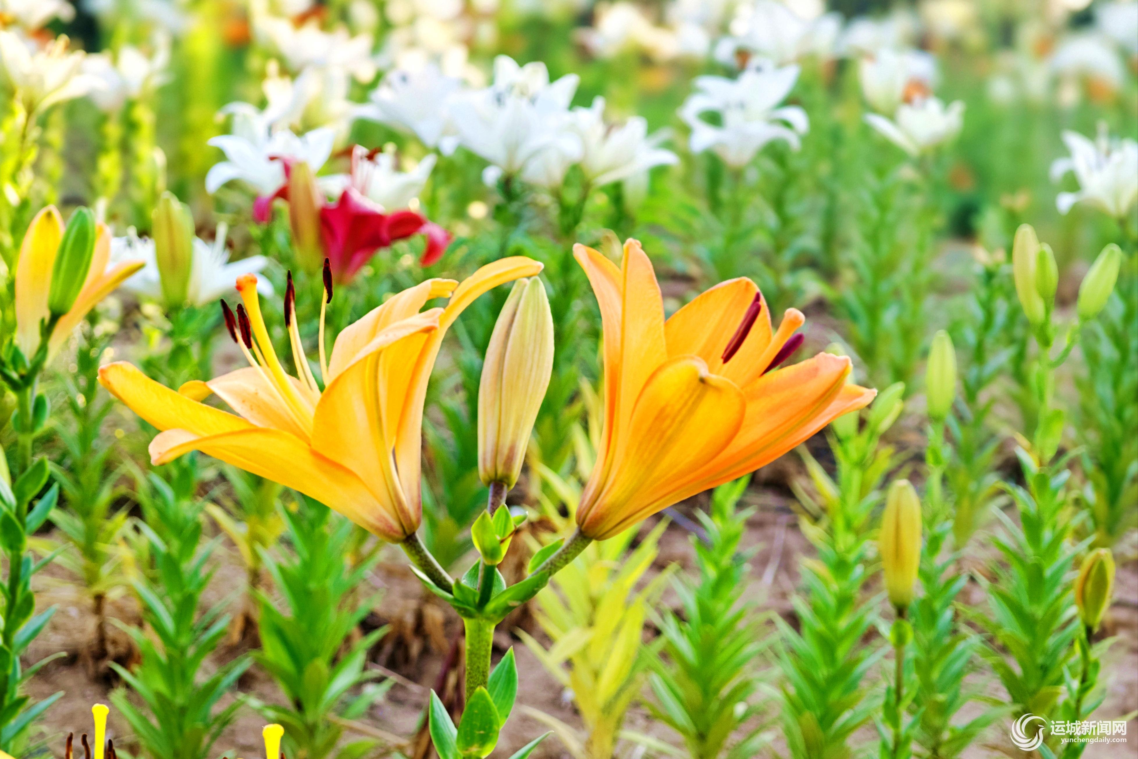 近日,在平陆县杜马乡转村的百合园,五颜六色的百合花次第绽放,清香满园,令人赏心悦目。