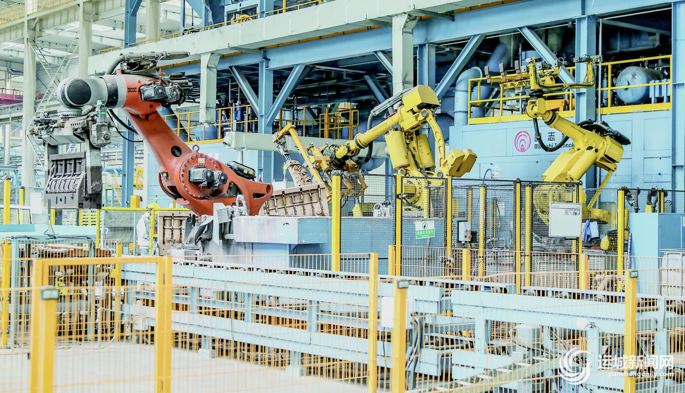 6月11日,亚新科国际铸造(运城)有限公司生产车间内,智能机械臂在作业。该公司建设年产6万吨汽车零部件生产线和智能加工生产线,产品主要供应国内外著名发动机主机企业。