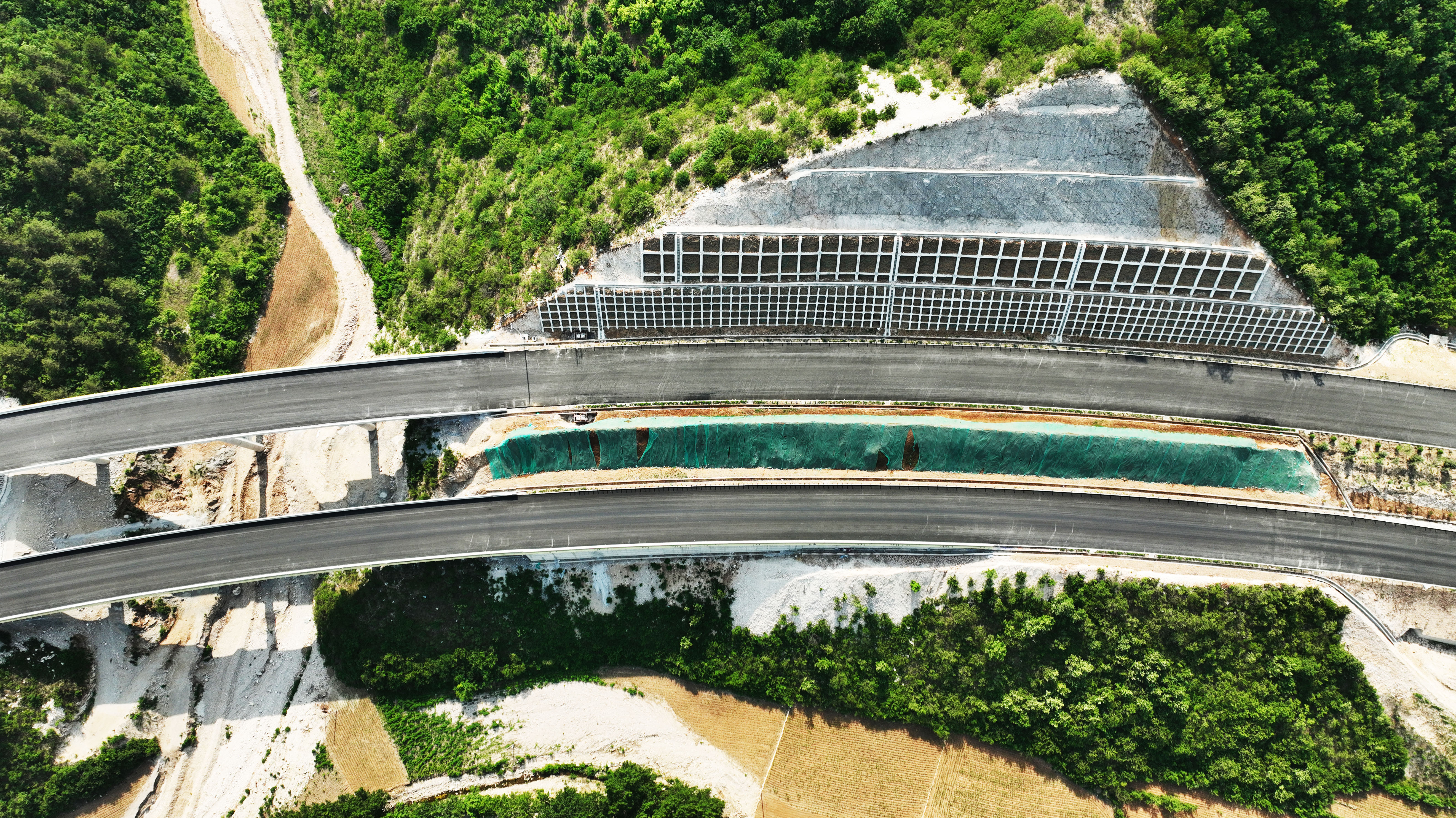 6月12日拍摄的建设中的凌绥高速公路(无人机照片)。