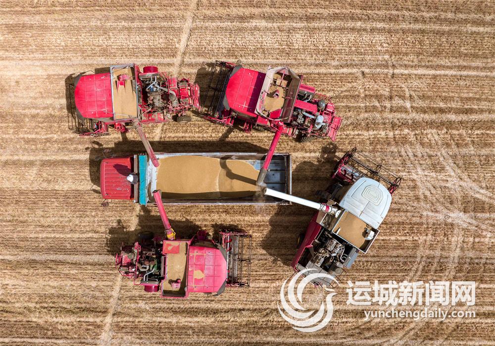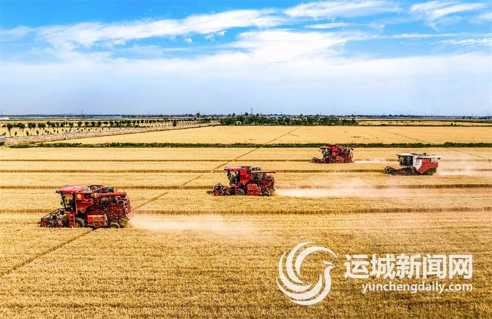 又是一年麦收季,河东大地广袤的田野一片金黄,“丰”景如画。