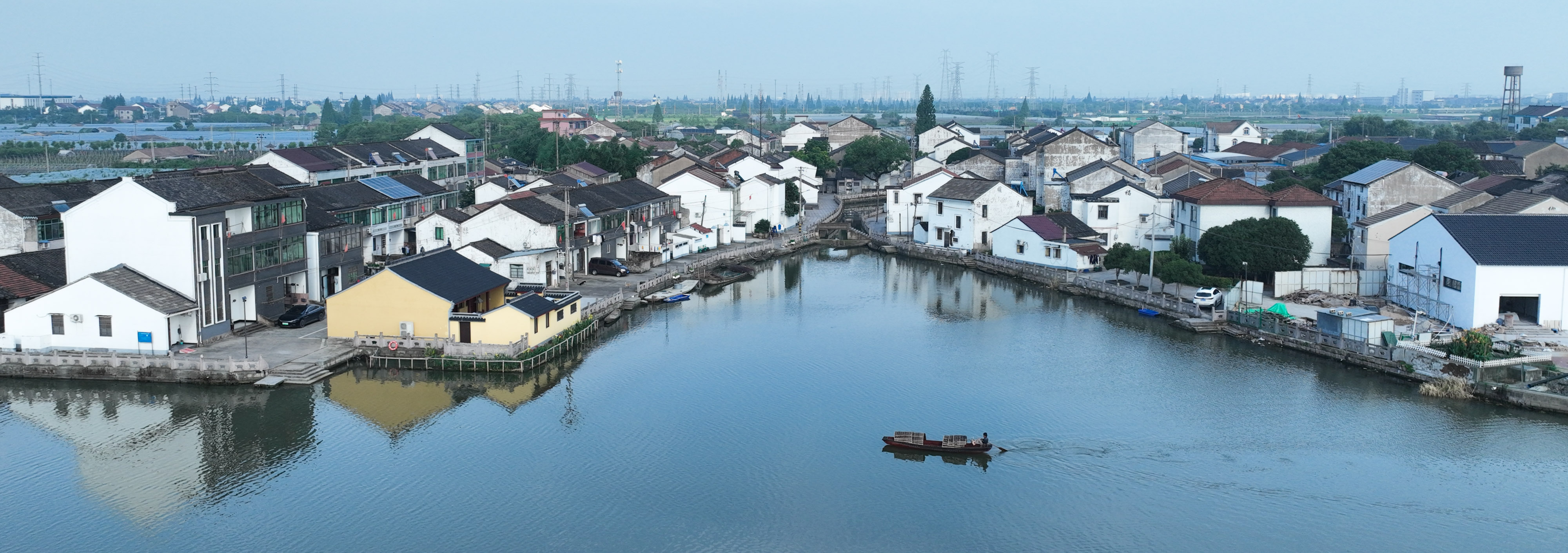 6月12日,钱寿堂在绍兴郊区一处水面上给乌篷船试水(无人机照片)。