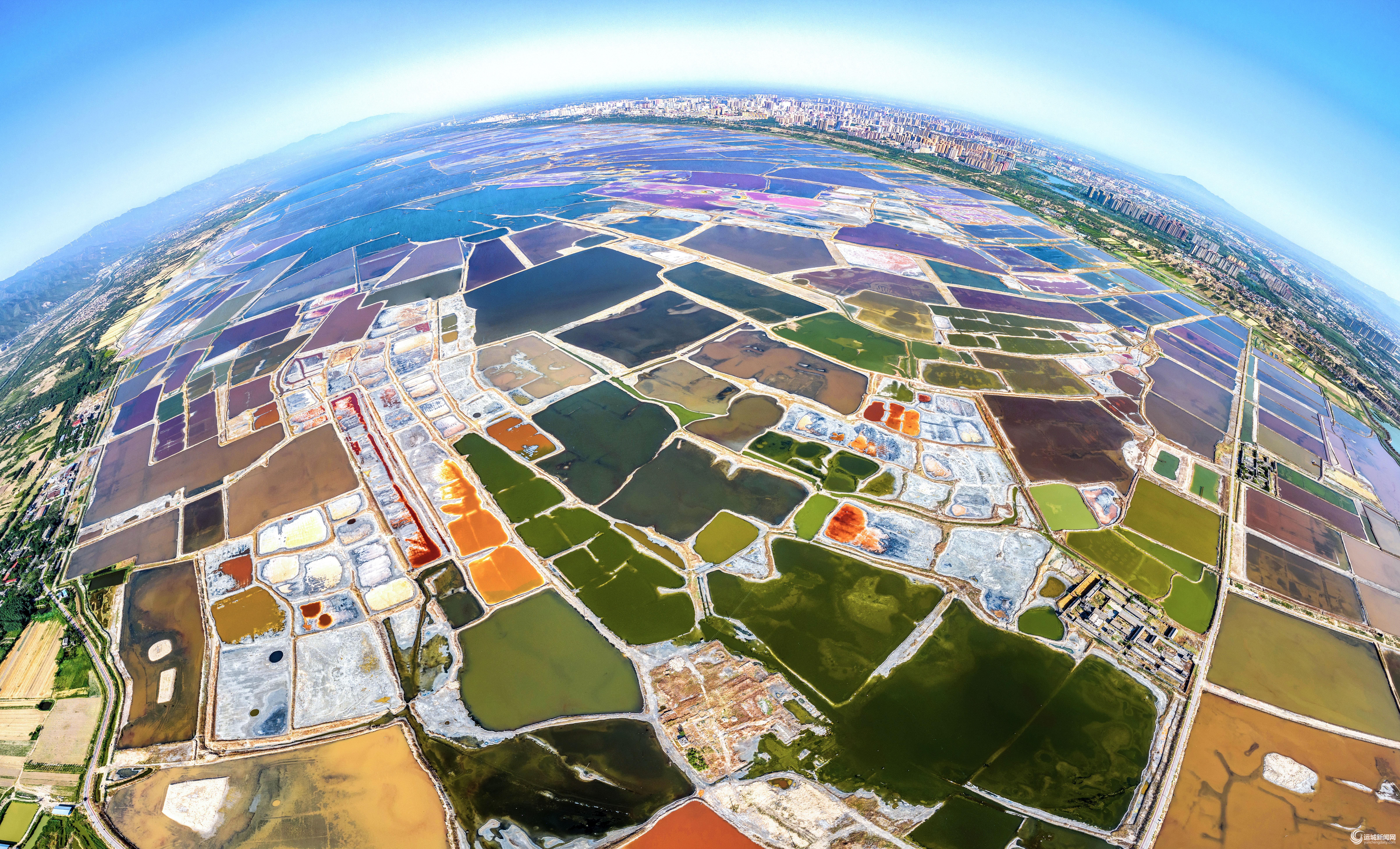 近日,随着气温升高,运城盐湖呈现出色彩斑斓的绚丽景色,宛如大地调色板,美不胜收。