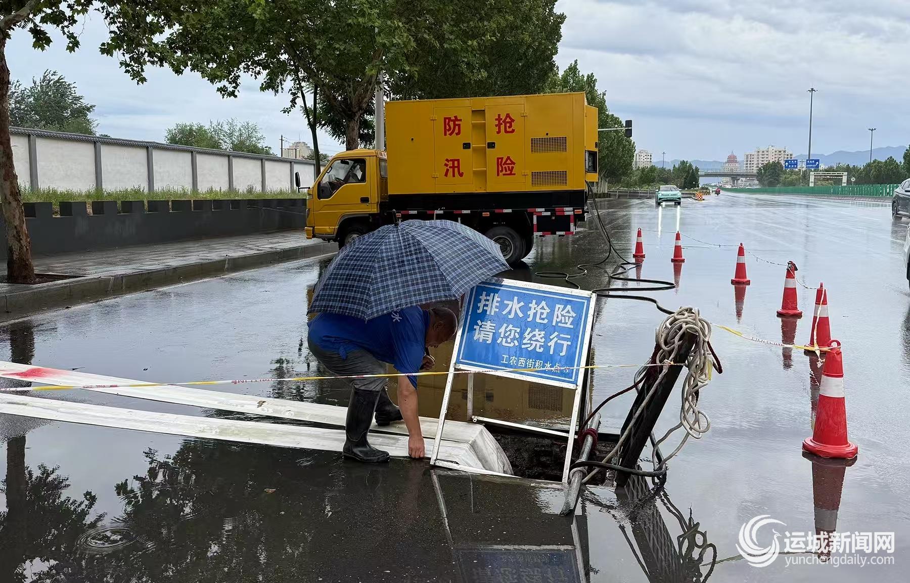 6月18日6时15分,市城市管理局和运城市气象局联合发布城市暴雨积涝气象风险蓝色预警,中心城区随即迎来强降雨天气,部分路段出现积水现象。