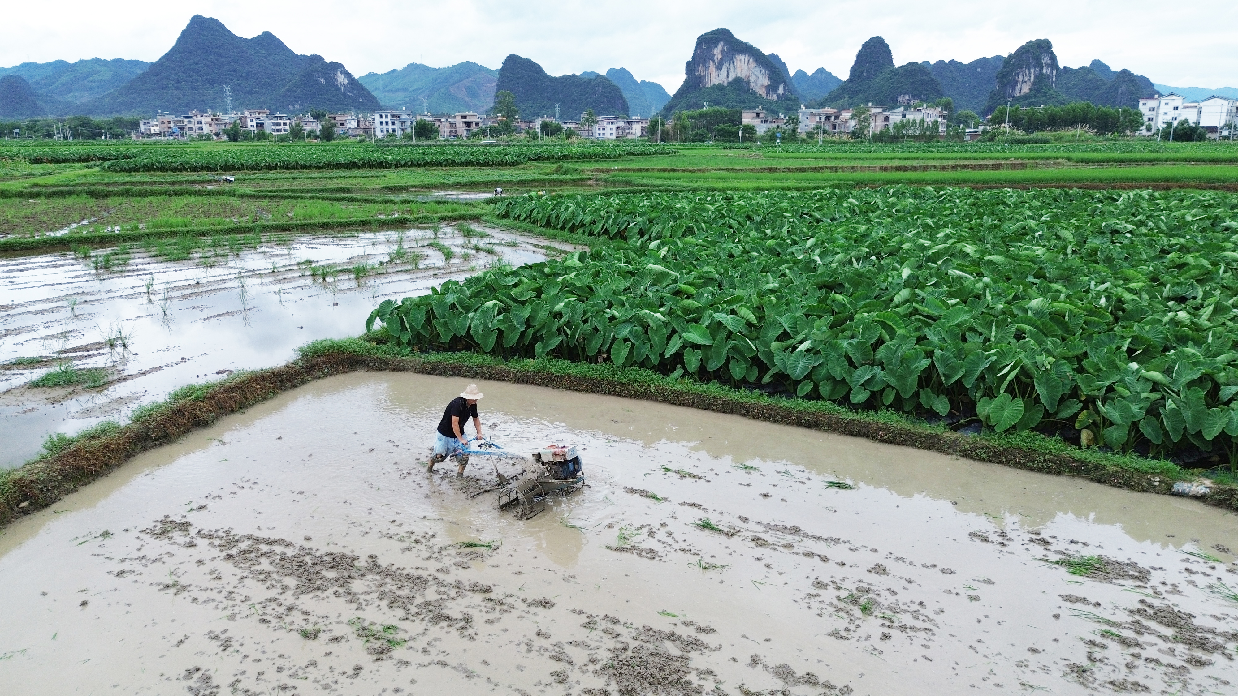 6月19日,广西贺州市平桂区鹅塘镇鹅塘村农民操作农机耕田。新华社发(廖祖平 摄)