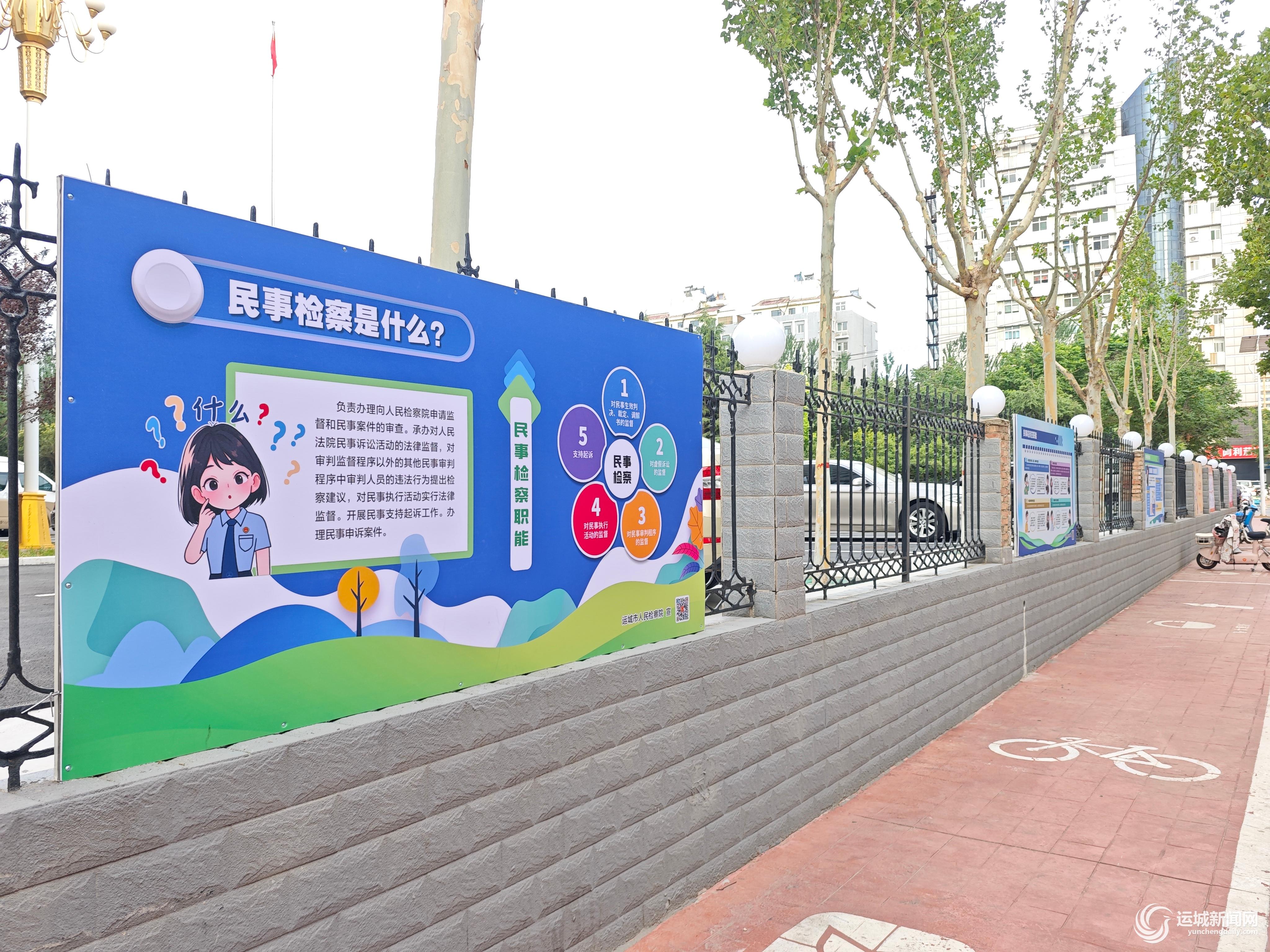 宣传展板的更新同样不遗余力。此次更新将46块宣传展板全部换新为pvc材质的展板,并使其均匀分布于道路两侧。展板以运城检察IP形象“检小芸”“检小诚”为导览员,以刑事、民事、行政、公益诉讼“四大检察”职能为主线,并适当加入未成年人检察等相关内容,用图文漫画、案例图解的形式全方位生动展示新时代检察工作,将运城检察历史沿革、各项职能及相关法律法规转化为通俗易懂的视觉语言,让居民在日常漫步中轻松学习了解检察知识。