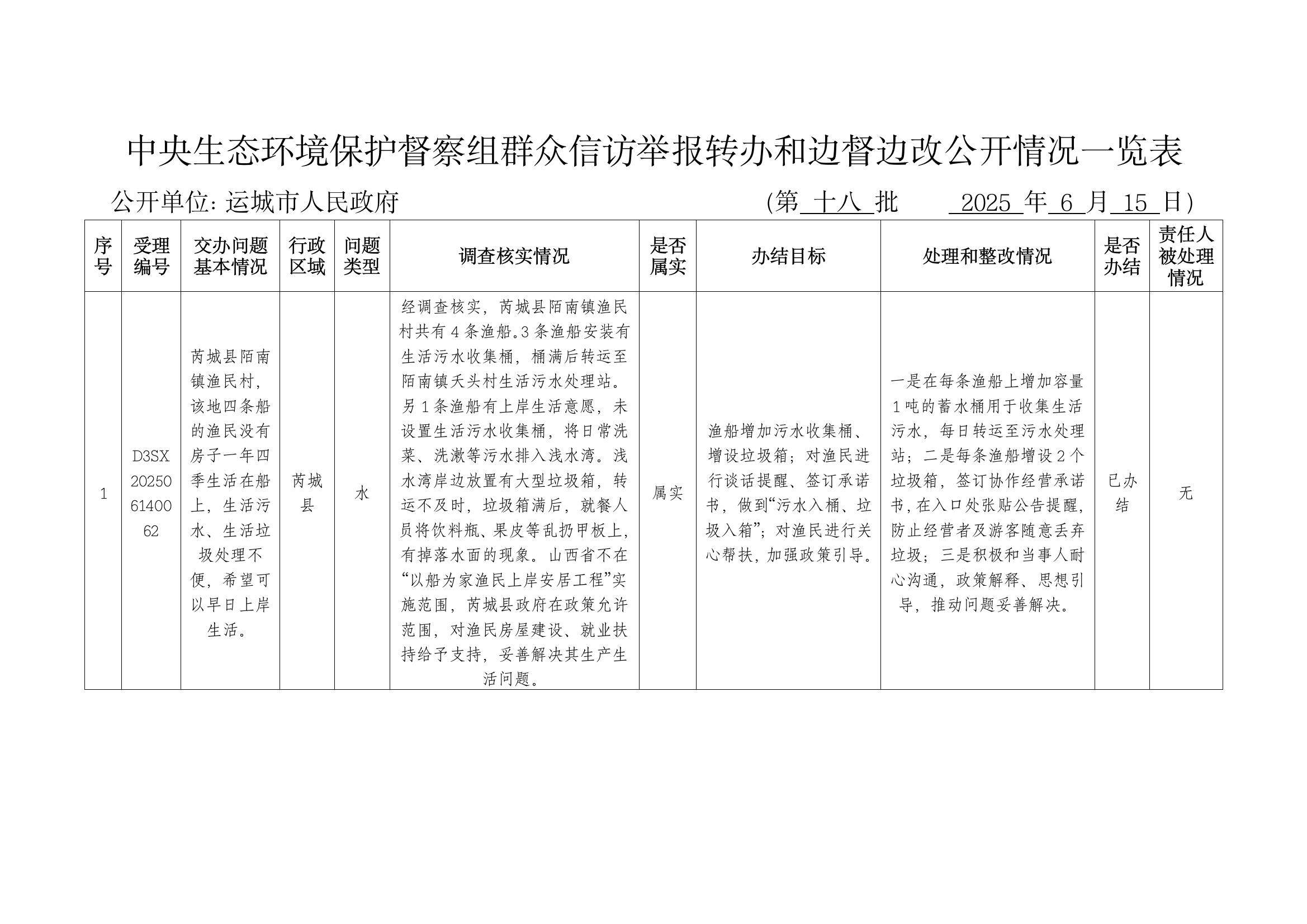 中央生态环境保护督察组群众信访举报转办和边督边改公开情况(第十八批)