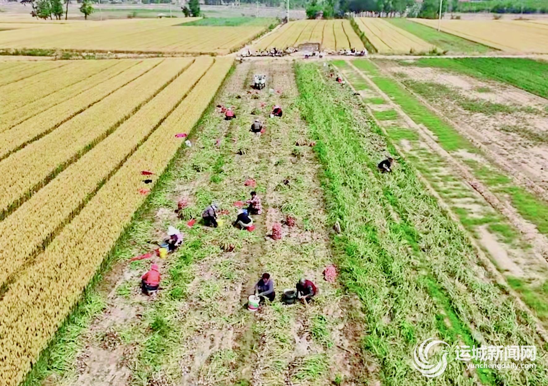 夏日的闻喜县侯村镇峪口村,空气中弥漫着辛辣而浓郁的蒜香。焦山山脚下,百亩蒜田铺展,一幅生动的丰收图景跃然眼前:蒜农们弯腰采挖,动作利落;三轮车、摩托车满载着沉甸甸的蒜袋在田埂间穿梭;收购点旁,蒜农们手脚麻利地剪须、装袋,汗水与笑颜交织。