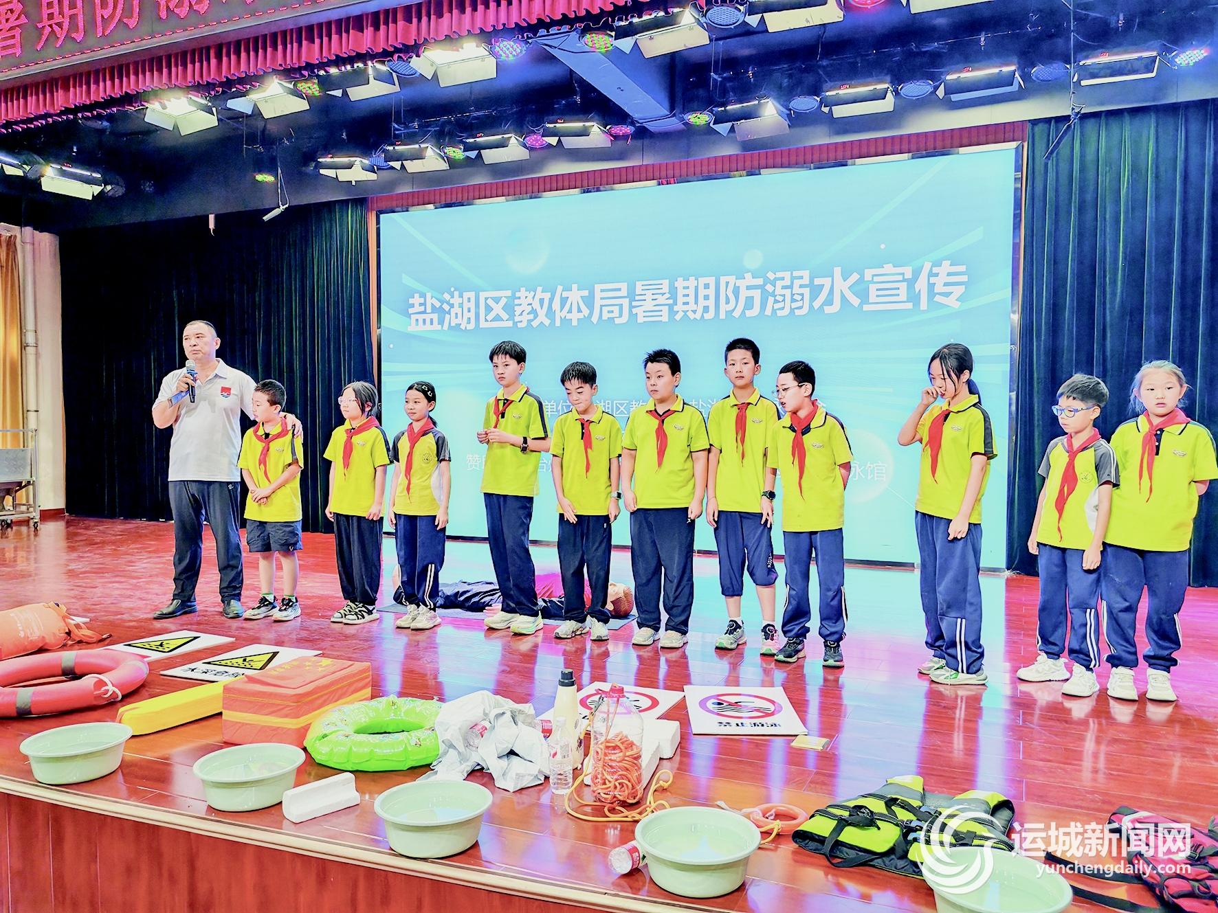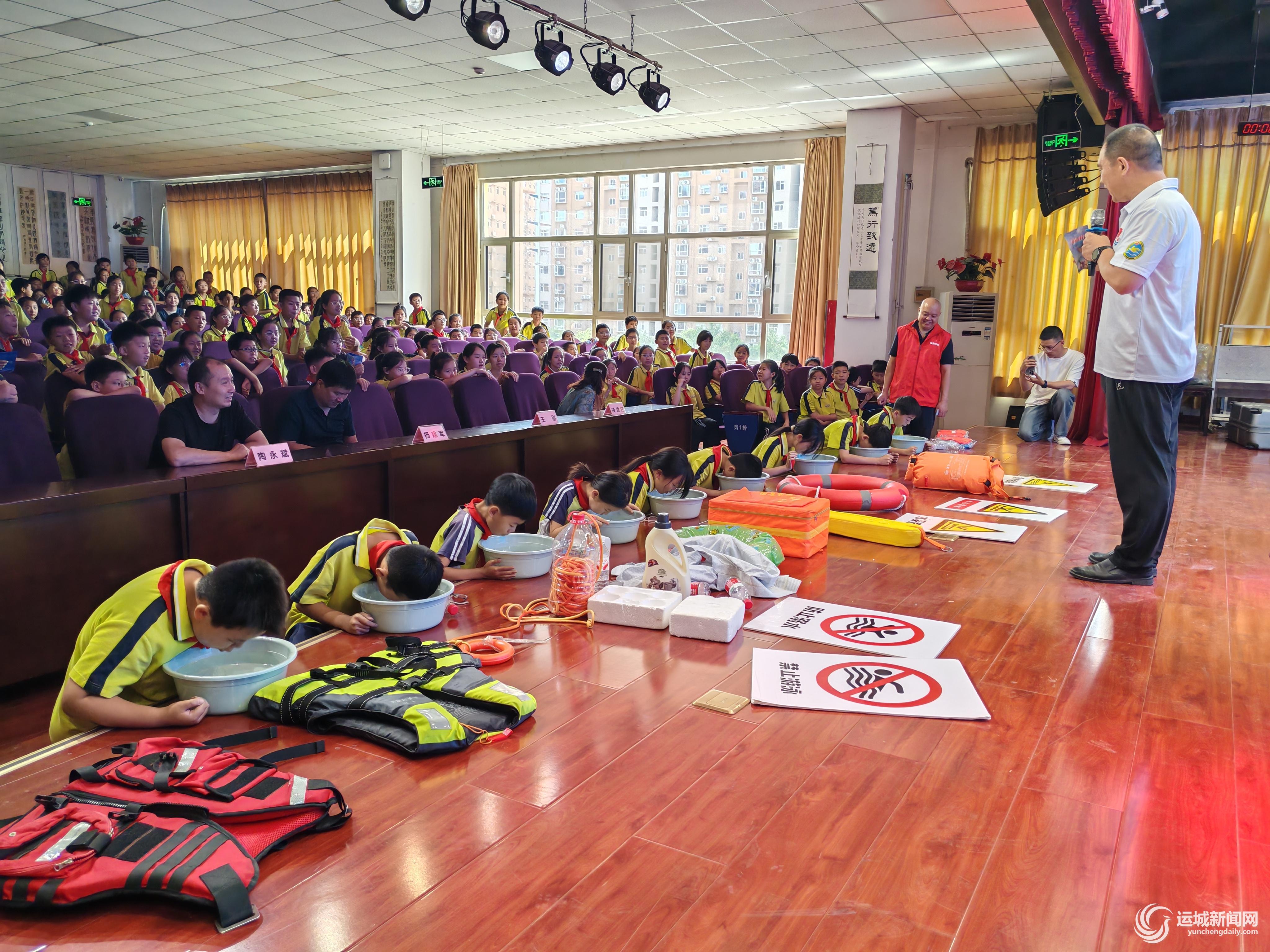 暑假即将到来,为防范学生溺水事件发生,做好安全接力,需要家长、学校、学生三方共同重视,不断提升安全意识和能力。6月17日、18日,由盐湖区教体局、盐湖区游泳协会主办的“珍爱生命 预防溺水”暑期防溺水宣传活动,先后走进魏风小学和大禹学校,为千余名师生普及防溺水知识,教授防溺水技能。